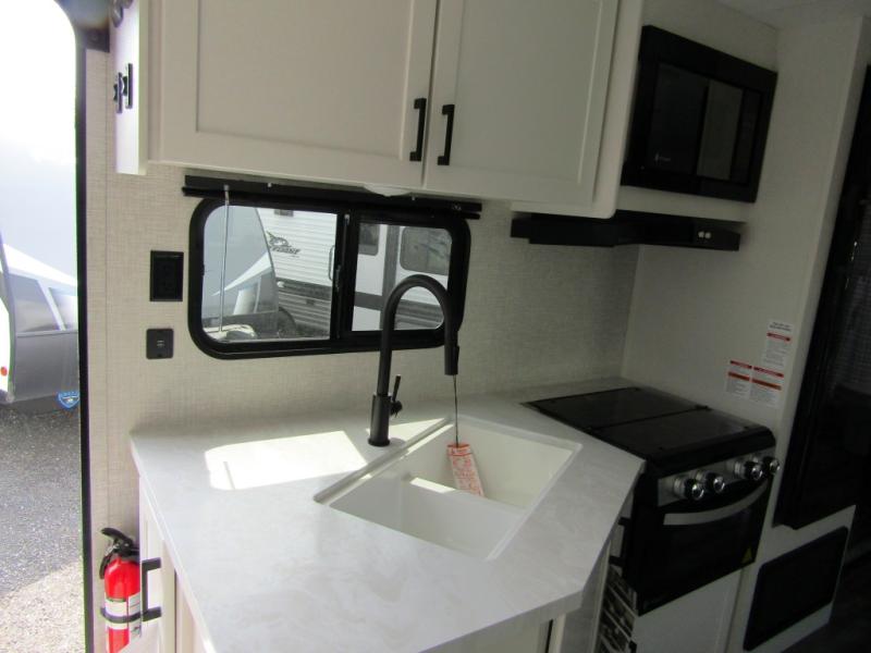 The Jayco Jay Flight SLX travel trailer is quite easy to own because it is lightweight for an easier towing experience. Built on a fully integrated A-frame with galvanized-steel, impact-resistant wheel wells, the Jay Flight SLX has quality at its very foundation. That quality continues on to the electric self-adjusting brakes, easy-lube hubs, Magnum Truss roof system, and LP quick connect. Some of what the mandatory Customer Value Package includes is backup camera prep, Keyed-Alike entry and baggage doors, marine grade exterior speakers, and an on-demand tankless water heater.