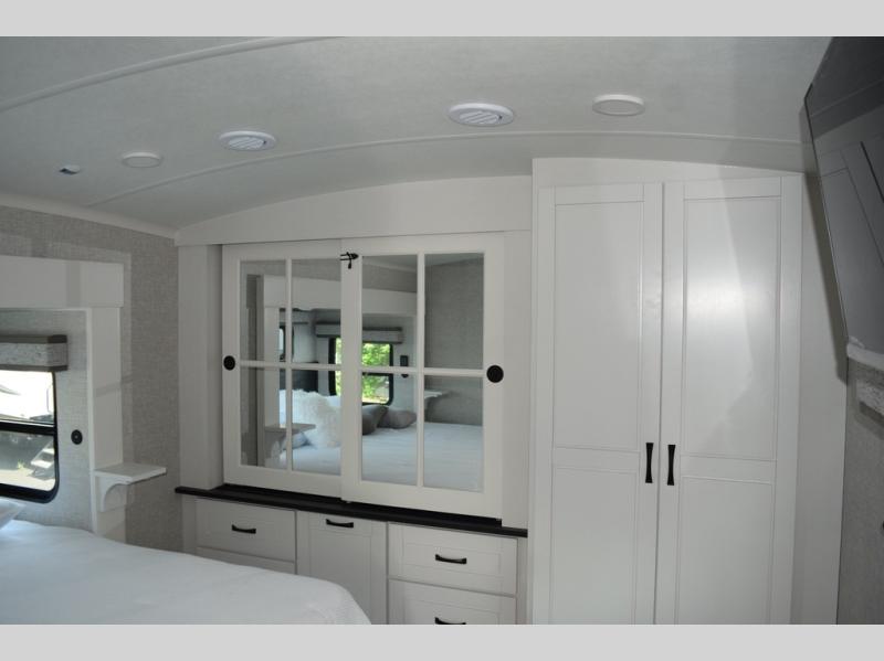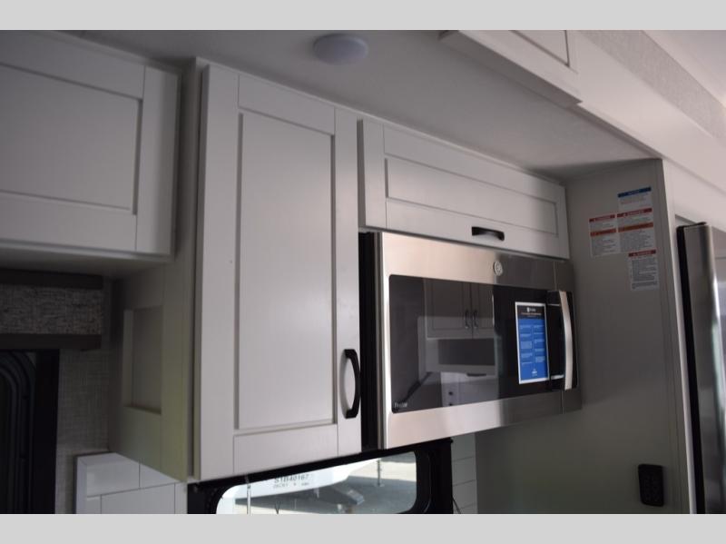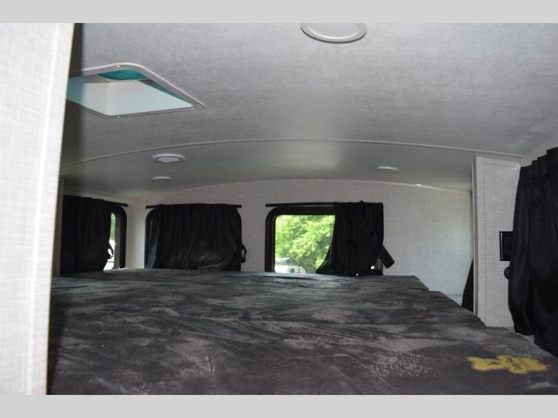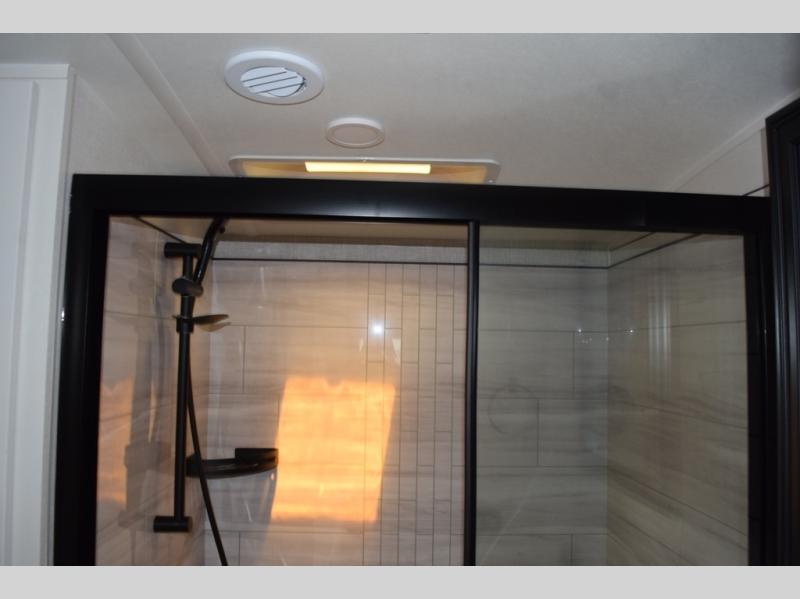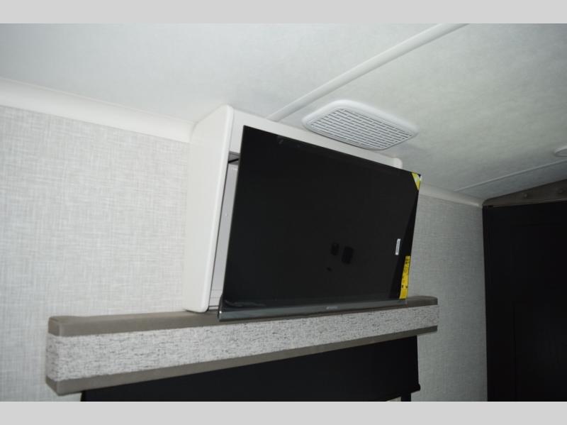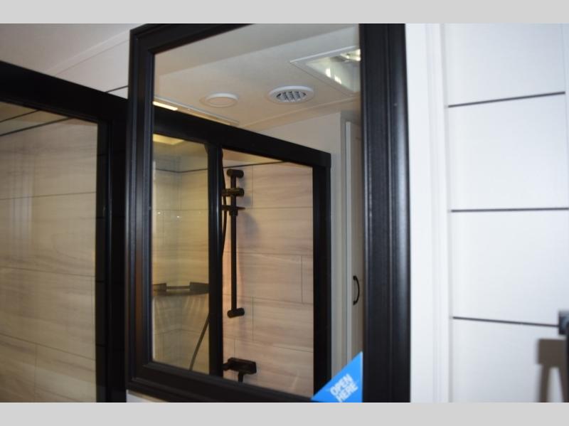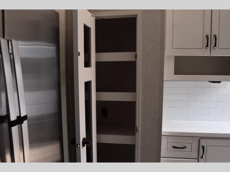 With two bedrooms plus a loft, there aren't many fifth wheels that can sleep as many people in as much comfort as this Jayco North Point! Up front is a private bedroom suite with a king bed and next to the bedroom is a full bathroom, while towards the rear you'll find a second bedroom with a queen bed. This bedroom also has an adjacent bathroom, conveniently all the way to the rear so it has its own entry door to the outside. There's also a loft with three bed mats which will be perfect for kids. In the center of it all you'll find a great living space, with a fully equipped kitchen and plenty of room for everyone to hang out. Relax in the theater seats across from the entertainment center, which features a 50" Smart LED HDTV and a fireplace for cozy evenings.