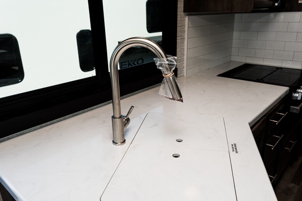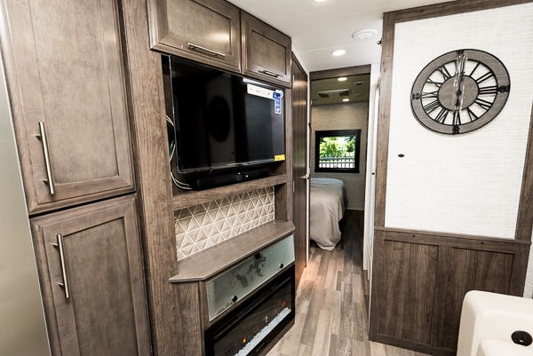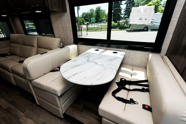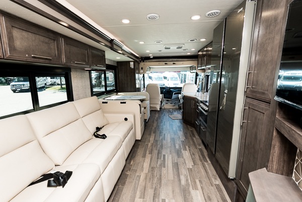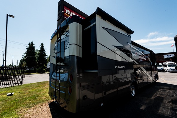 Stop thinking and start living like a boss in this Precept Class A gas motorhome! You will be able to keep the whole gang happy with delicious meals made with the Furrion all-in-one cooktop and oven and the residential microwave, and you can keep all of your ingredients fresh and cool in the residential refrigerator. A large slide in the main living area offers you more floor space so that you can easily get to the back bedroom or the front cab area, and the separated bathroom is just what you need if you have multiple people getting ready in the morning. And you will feel more at home with the fireplace across from the 93" reclining sofa!