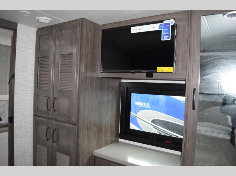 Experience comfort and space with each one of these Jayco Seneca Super C diesel motorhomes! The diesel Freightliner S2RV Plus chassis provides a strong foundation for your coach, and the superior towing power allows you to tow a toy or car while keeping it at a lower weight point. You will find that these models are built sturdy with a powerful blend of precise handling and renowned stability with features like the StrongholdVBL lamination, the JRide Premium system, and the one-piece, seamless, fiberglass roof that will withstand all of your adventures. The Firefly total coach control system simplifies your camping experience with the ability to monitor and control key RV features in the palm of your hand on your phone or tablet. Come find the right model that meets your needs today!
