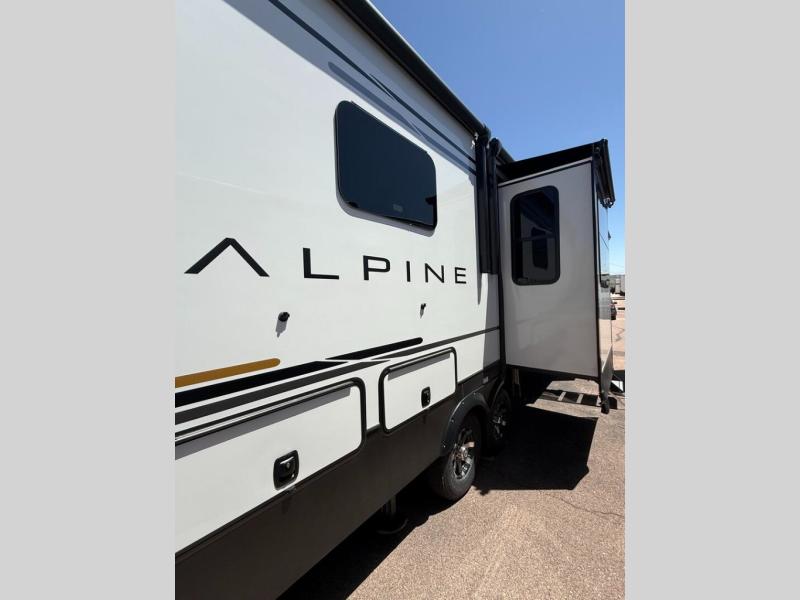 Luxury is not an option, it is a standard with each one of these Keystone RV Alpine fifth wheels! A 8' 4" wide body construction will create an open, residential feeling, and cutting-edge technology will provide a hassle-free camping experience. The Tru-Fit slide construction is more durable and minimizes motor structural stress, as well as resists leaking, and the Blade Pure airflow system provides residential comfort with its high-performance. Each fifth wheel includes designer flooring throughout, stunning solid wood cabinet doors, luxurious crown molding, and solid surface countertops in the kitchen. The exterior also includes an outside shower with hot and cold water, Lippert strut assisted SolidSteps, Hitch Vision with LED lighting, and many more conveniences!