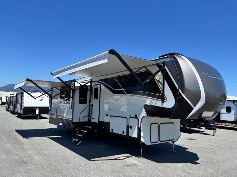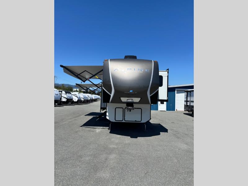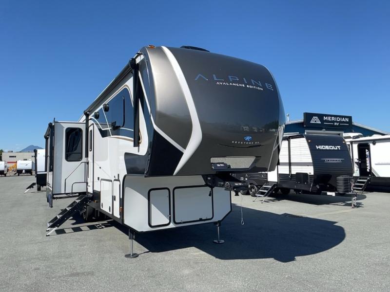 With any Keystone luxury full-profile Alpine Avalanche Edition fifth wheel, you will experience wide-body construction that allows you to stretch out and stay awhile during any season thanks to the Polar Pack All Season Protection that includes a heated and enclosed underbelly, an Astro foil reflective layer on the roof, front and rear walls, and two static attic vents, plus more! The interior offers hardwood slide out fascia with wood accents, crown molding, plus your choice of modern interior design. There are many more Keystone exclusives, like the Tru-Fit slide construction, the in-floor heating ducts, KeyTV™, and much more to bring you a full-packed, luxury fifth wheel!
