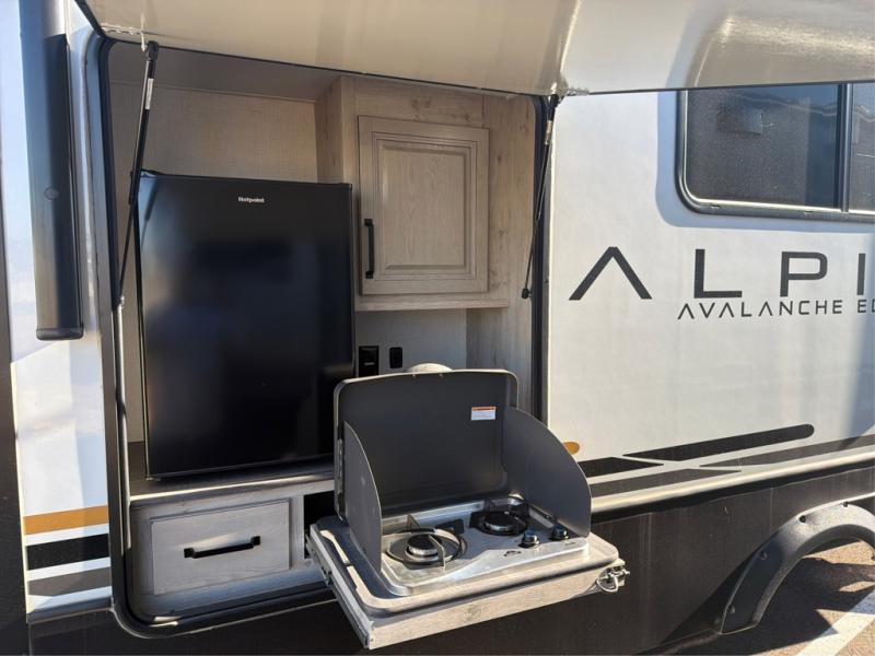 With any Keystone luxury Alpine Avalanche Edition fifth wheel, you will experience wide-body construction that allows you to stretch out and stay awhile during any season thanks to the Polar Pack All Season Protection that includes a heated and enclosed underbelly, an Astro foil reflective layer on the roof, front and rear walls, and two static attic vents, plus more! The interior offers hardwood slide out fascia with wood accents, crown molding, plus your choice of modern interior design. There are many more Keystone exclusives, like the Tru-Fit slide construction, the in-floor heating ducts, KeyTV™, and much more to bring you a full-packed, luxury fifth wheel!