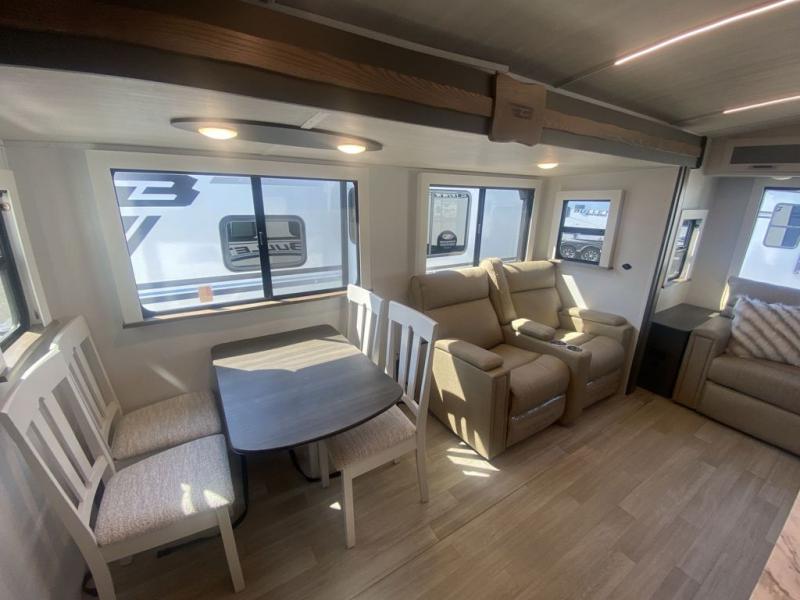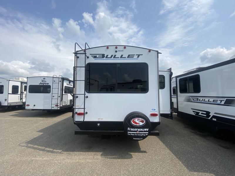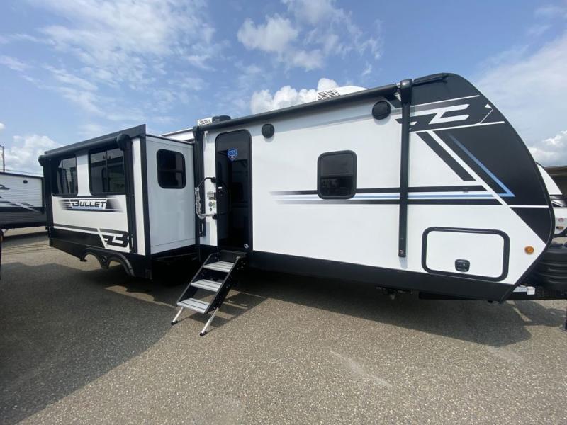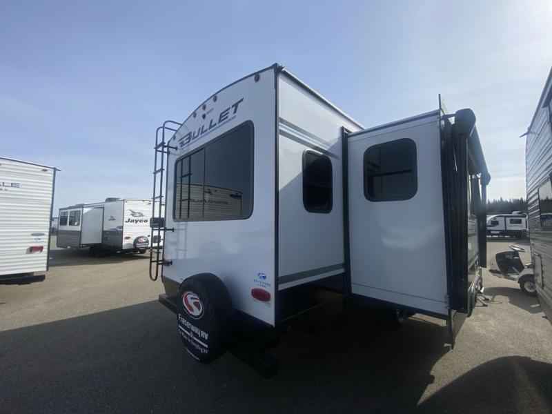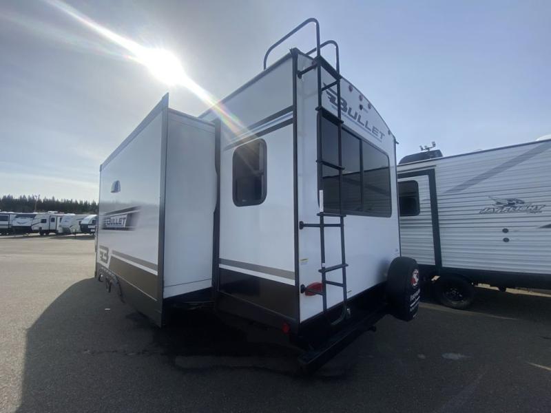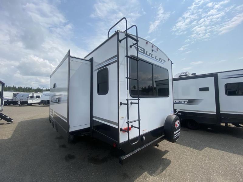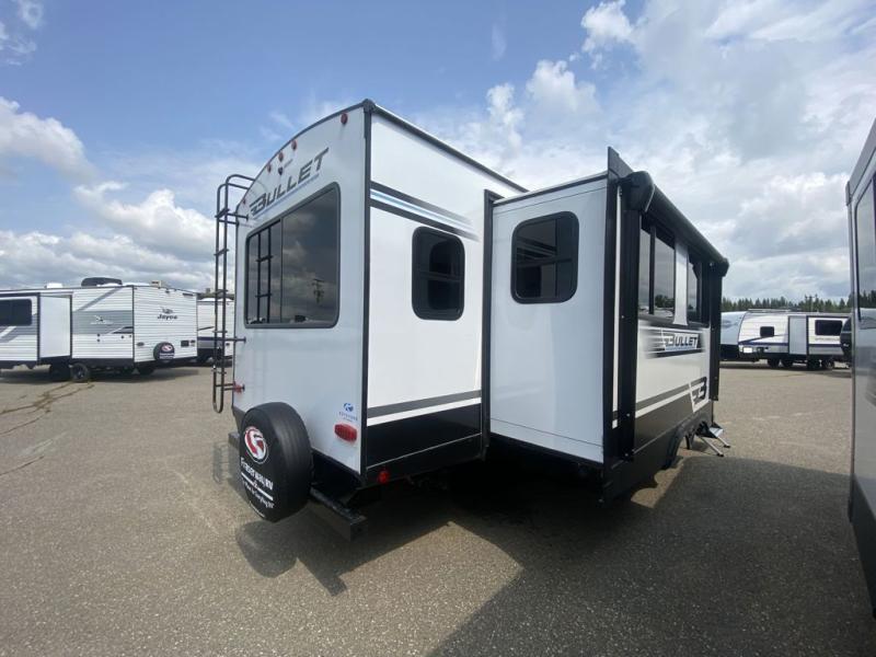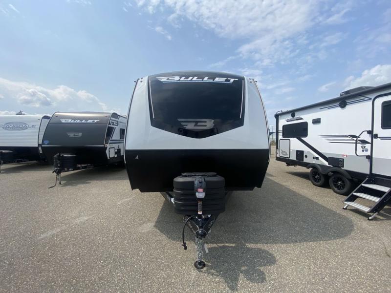 The Bullet Crossfire by Keystone are the perfect lightweight travel travel for rookie campers to seasoned RVers! Each one is built with a one-piece polypropylene underbelly, a fully walkable roof, and a high impact thermoset resin painted front cap for added durability. There is also a Dexter Torsion axle rubber ride suspension and Goodyear Endurance tires for a smooth tow plus a power tongue jack and power stabilizer jacks for easy set up. The interior will have you feeling right at home with deluxe night shades, updated Tranquil Timber decor, residential Beauflor vinyl flooring, and seamless kitchen countertops.