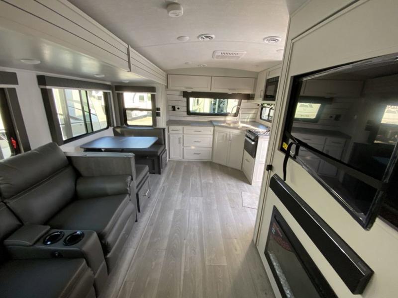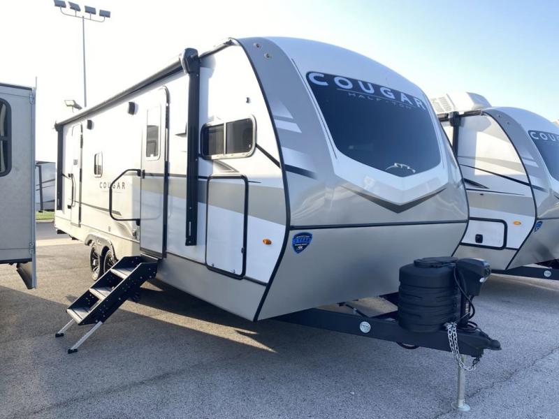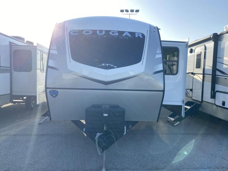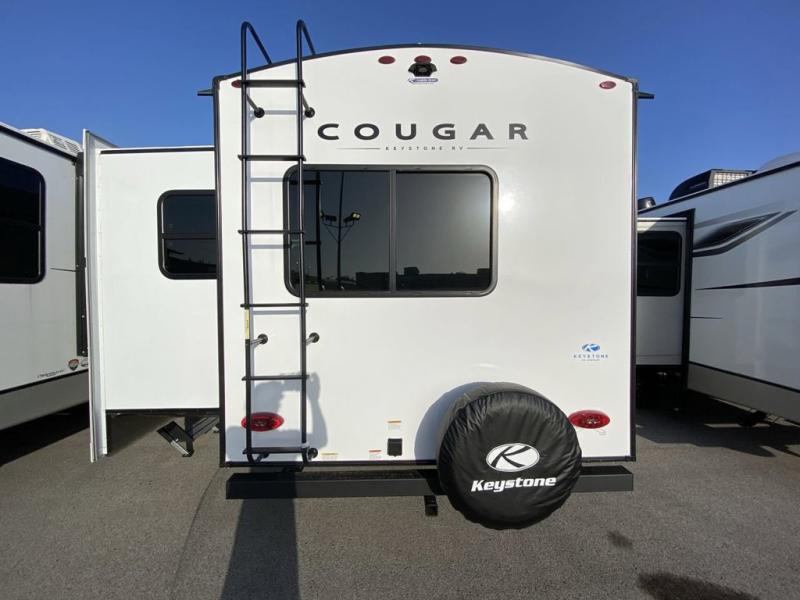 The Keystone Cougar Half-Ton fifth wheel and travel trailers are known as one of America's favorites for a reason! Some of those reasons are the exclusive features that come from Keystone, like the Winegard Air 360+ omni-directional rooftop antenna, the in-floor heating ducts, and the Hyper Deck flooring. The Cougar Half-Ton has a Climate Guard protection package to keep you safe during inclement weather, along with two roof attic vents, PEX plumbing and more. Use the 17" Furrion range with Piezo ignition to create all of those familiar meals from home, and enjoy endless hot showers with the Girard tankless on-demand water heater!