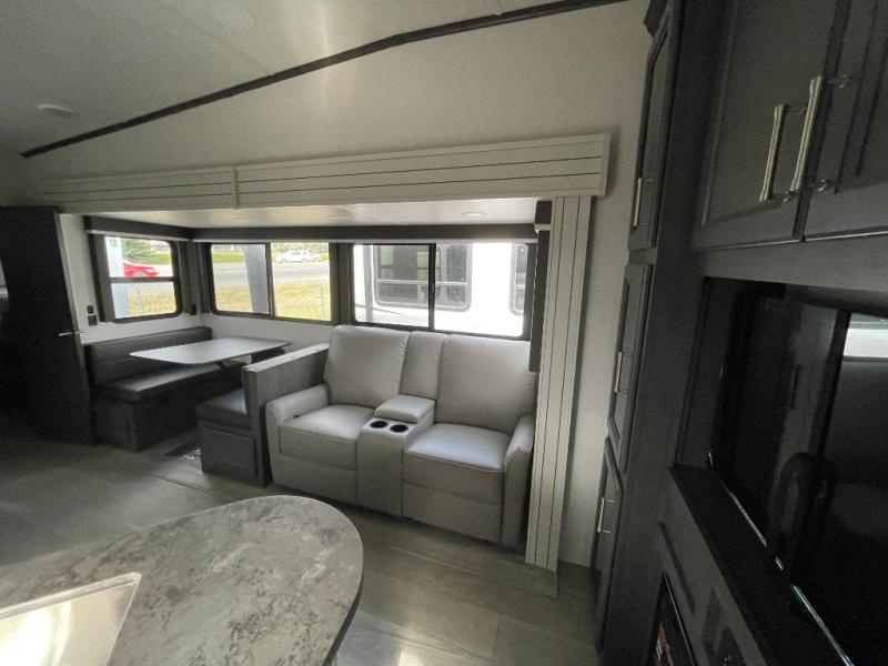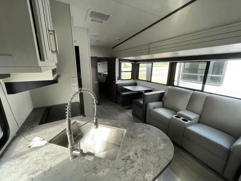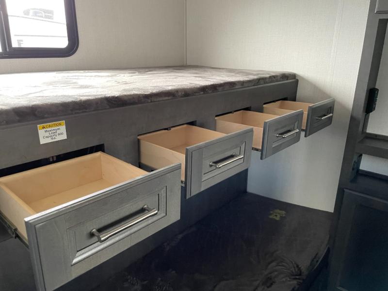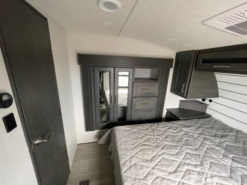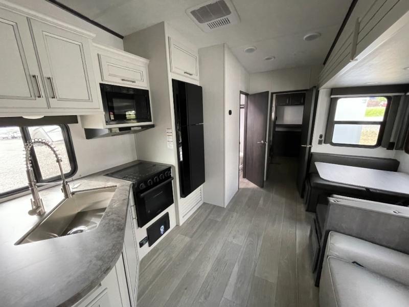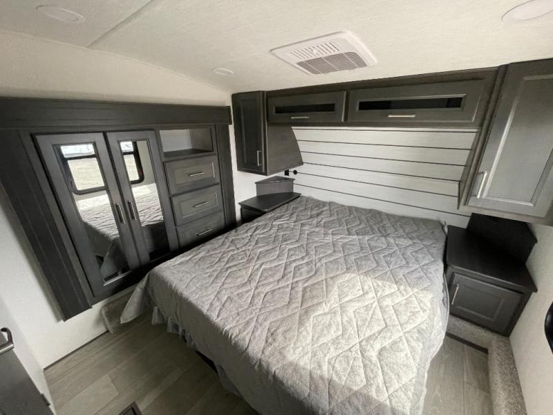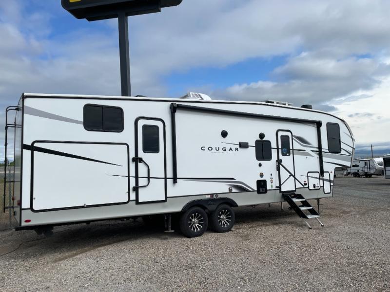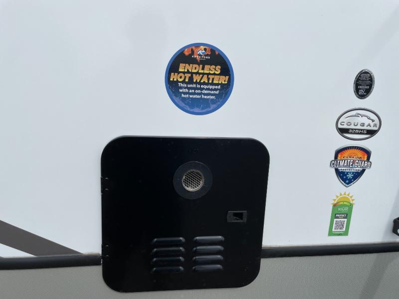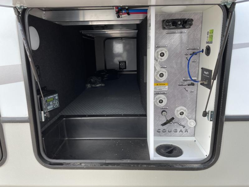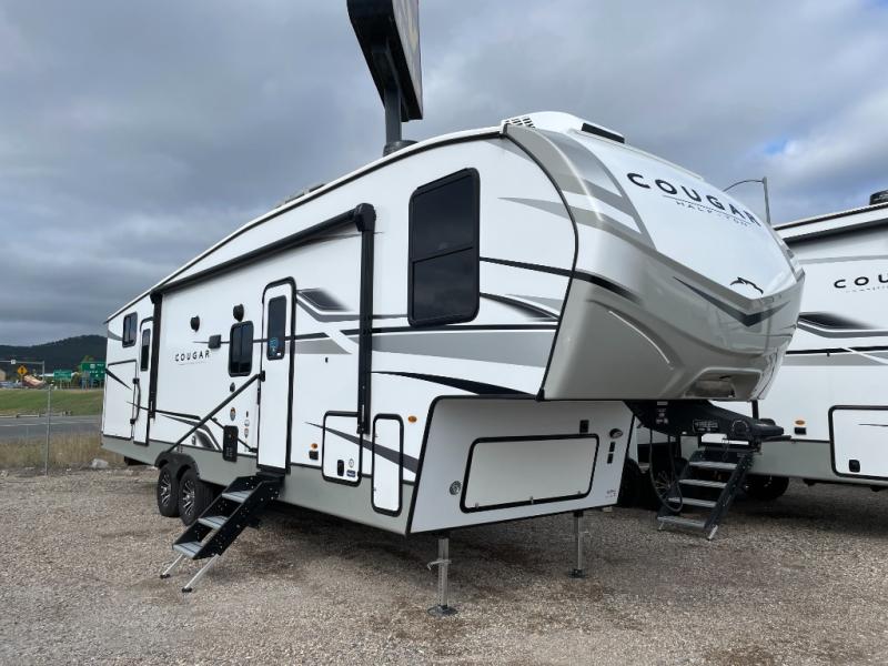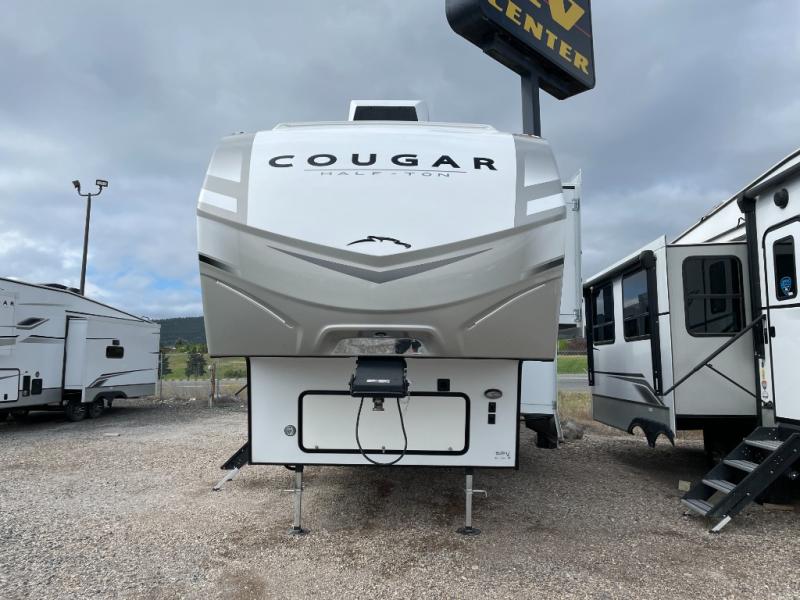 The Keystone Cougar Half-Ton fifth wheel and travel trailers are known as one of America's favorites for a reason! Some of those reasons are the exclusive features that come from Keystone, like the Winegard Air 360+ omni-directional rooftop antenna, the in-floor heating ducts, and the Hyper Deck flooring. The Cougar Half-Ton has a Climate Guard protection package to keep you safe during inclement weather, along with two roof attic vents, PEX plumbing and more. Use the 21" Furrion range with Piezo ignition to create all of those familiar meals from home, and enjoy endless hot showers with the Girard tankless on-demand water heater!