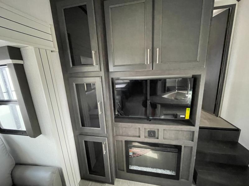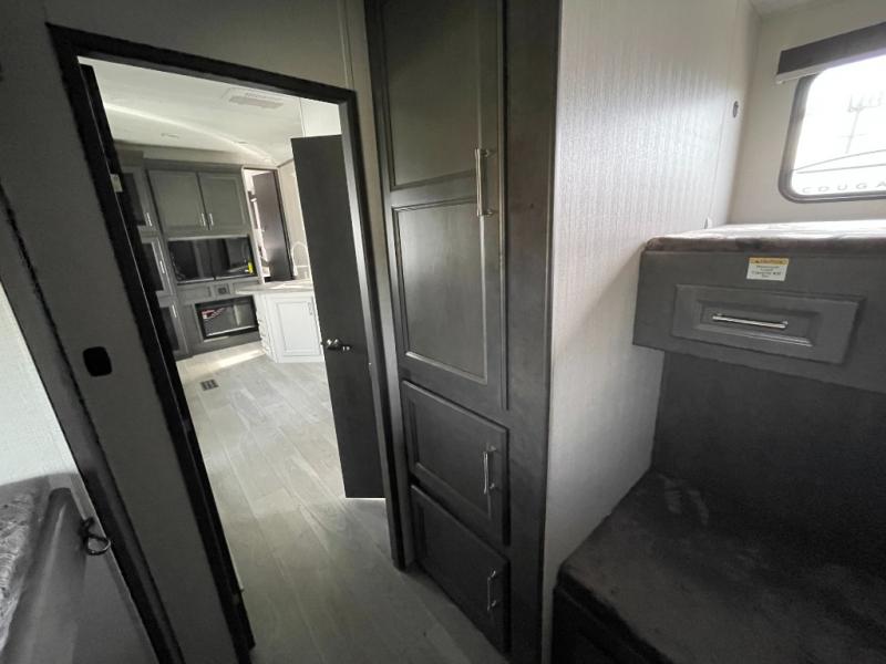 You won't have any trouble convincing your friends or family to join you on an adventure with this Cougar Half-Ton fifth wheel! Since this unit has both a full and a half bathroom, it will be easy for everyone to get ready in the morning, and the 21" Furrion range will allow you to whip up a full batch of pancakes for your guests. Store any leftovers in the 10.4 cu. ft.12V refrigerator before heading out on your next exciting expedition. If you need your backpacks and hiking gear, you can grab them from the exterior pass-through storage, and you will enjoy the cozy living space with the fireplace!