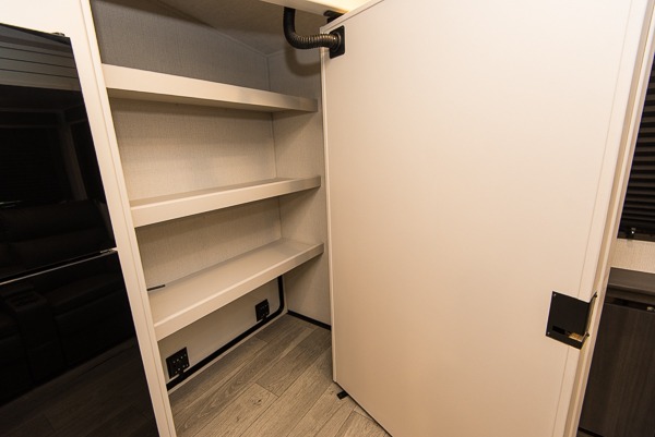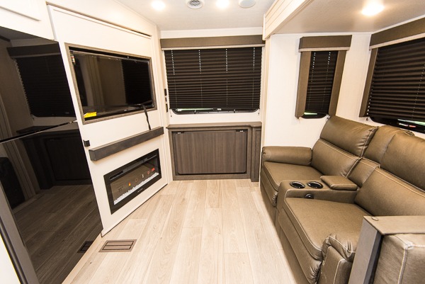 The Cougar Sport structural I-beam frame with stamped steel cross-members and outriggers, plus its laminated sidewalls with five-sided aluminum superstructure and Alpha Super Flex roof membrane are what active RVers love about the construction of the Cougar line. The Cougar Sport models are no exception when it comes to a great package, as well as being smaller and lighter weight than their big brother Cougar models. A one-piece, heated and enclosed polypropylene underbelly means a longer camping season. On the inside, residential shaker style hardwood cabinet doors and decorative crown molding, plus seamless pressed countertops and an on-demand water heater will make your unit feel even more like home. You are also sure to appreciate the shiplap style decorative accent wall behind the bed, a porcelain foot flush toilet in the bathroom, plus residential kitchen hardware, and so much more.
