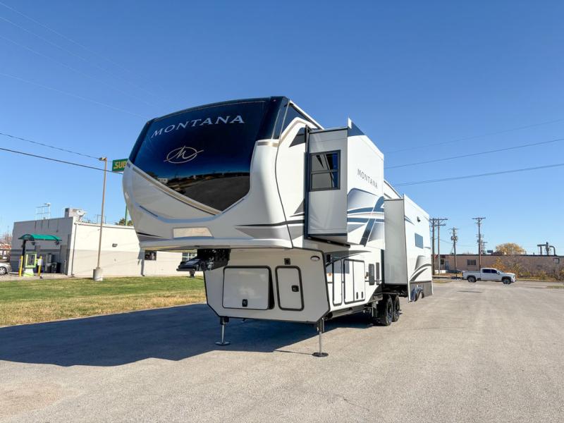 Enjoy luxury, innovation, and the outdoors in any one of Montana's finest fifth wheels. Each set the standard with exceptional features, and exciting factory installed options to provide you a great home on the road. Keystone's exclusive 12" I-beam chassis with z-frame technology has been reengineered to be stronger, lighter and built for "the long haul". A few other construction features you will appreciate include a Road Armor suspension, 2" thick, dual-layered lauan high gloss fiberglass sidewalls, a MaxTurn front cap with KeyShield automotive-grade paint, and a fully walkable roof with an Alpha seamless TPO membrane system. Each feature stylish interiors with two decor choices paired with beautiful hardwood cabinetry, vinyl flooring throughout, central vacuum, plus a La-Z-Boy furniture package for all-around comfort!