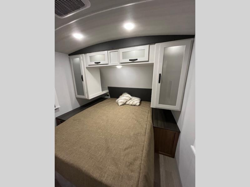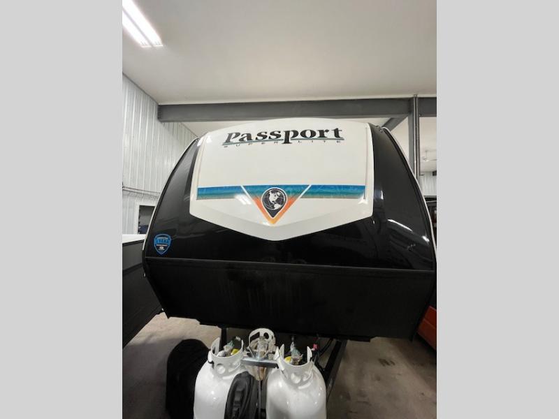 With any Keystone Passport Super Lite travel trailer you will enjoy lightweight towing and lots of interior comforts! The power tongue jack lets you hitch up at the drop of a hat, and the Dexter torsion axle rubber ride suspension will make towing easier than ever. You will appreciate having power stabilizer jacks for quick setup and an exterior convenience center to monitor tank levels. These trailers are constructed with a seamless, laminated and gel-coated filon exterior, 80% tinted safety glass windows, and a one-piece polypropylene underbelly. The interior will have you feeling right at home with residential durable Beauflor vinyl flooring, deluxe night shades, LED lighting throughout, and seamless kitchen countertops to name a few comforts.