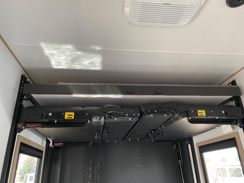 Experience a breath of fresh air with one of these Keystone RV Raptor fifth wheel toy haulers! Their rugged construction consists of a one-piece Alpha Super Flex TPO roof membrane, Dyna Span floor decking, and 5,000 lb. frame-welded tie- downs to keep your toys in place as you travel. Some unexpected conveniences you will appreciate include an Omni-Chill A/C system to keep you cool on those hot summer days, a Furrion backup camera, MaxTurn™ technology with a Helux™ pin box, and a Generation 3 iN-Command smart automation system with Global Connect to make life easier. There is also designer style vinyl flooring throughout, along with hardwood ceiling treatment with LED accent lighting, beach wood and white cabinetry, and many more interior comforts!