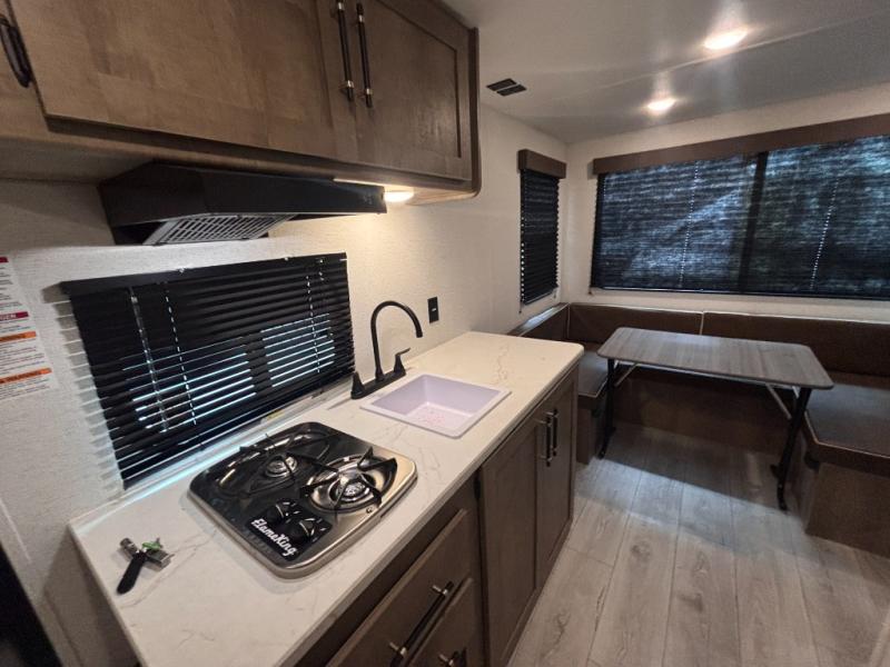 With any Springdale Classic Mini travel trailer by Keystone, you will enjoy lightweight towing thanks to their single-axle! You'll find the XL entry assist handle will make entering and exiting your unit easier than ever, and the power awning will provide protection from the sun as you relax in your camp chairs outside. Each model includes blackout night shades, solid wood cabinet doors and drawers, a shower skylight for more standing room, plus many more interior comforts. There is also a 5,000 BTU sidewall A/C and 20K BTU furnace to keep you comfortable, plus a Girard tankless water heater for endless hot showers!