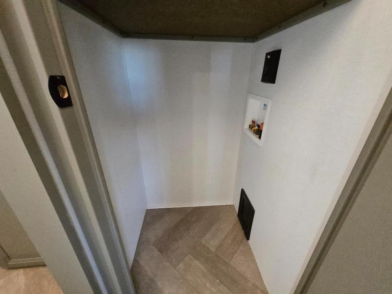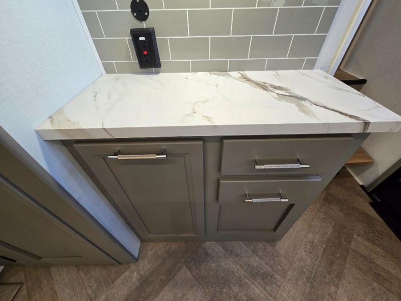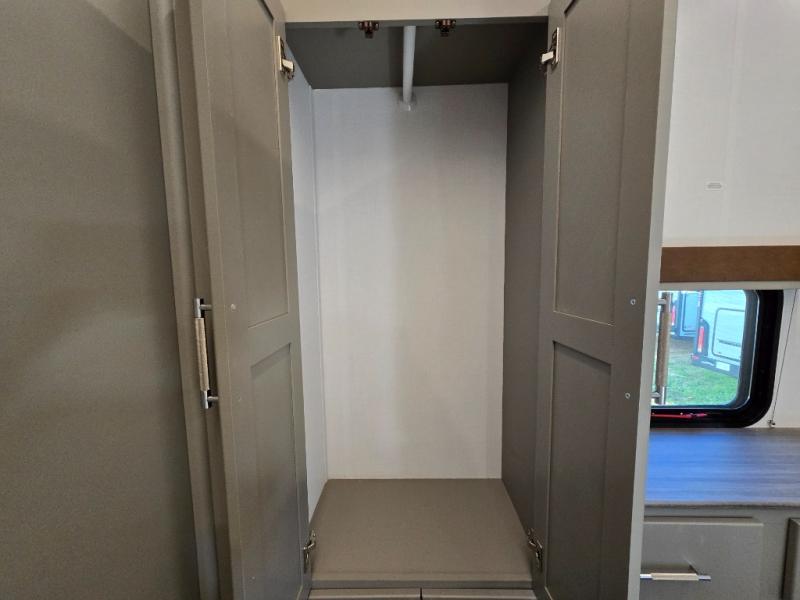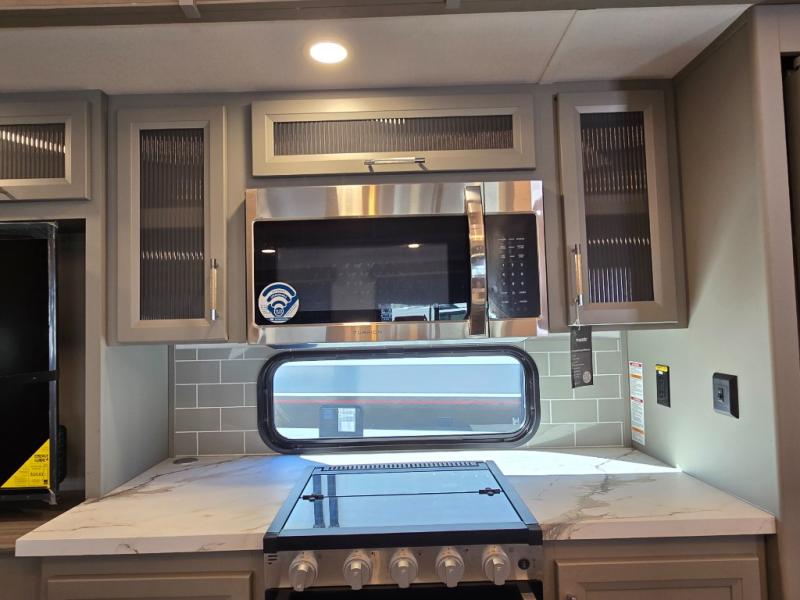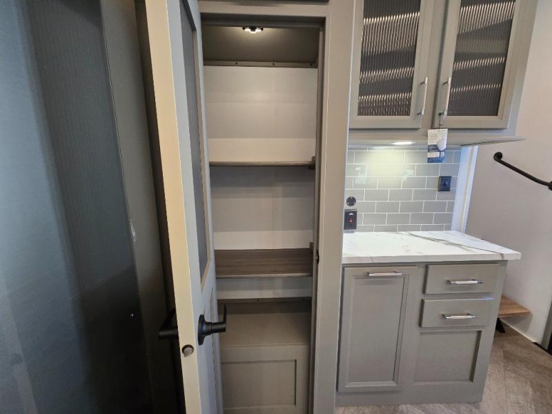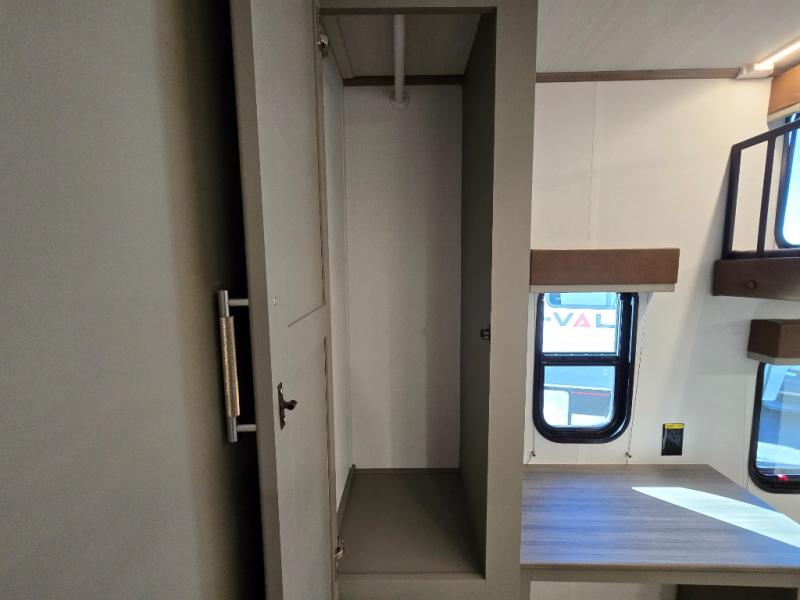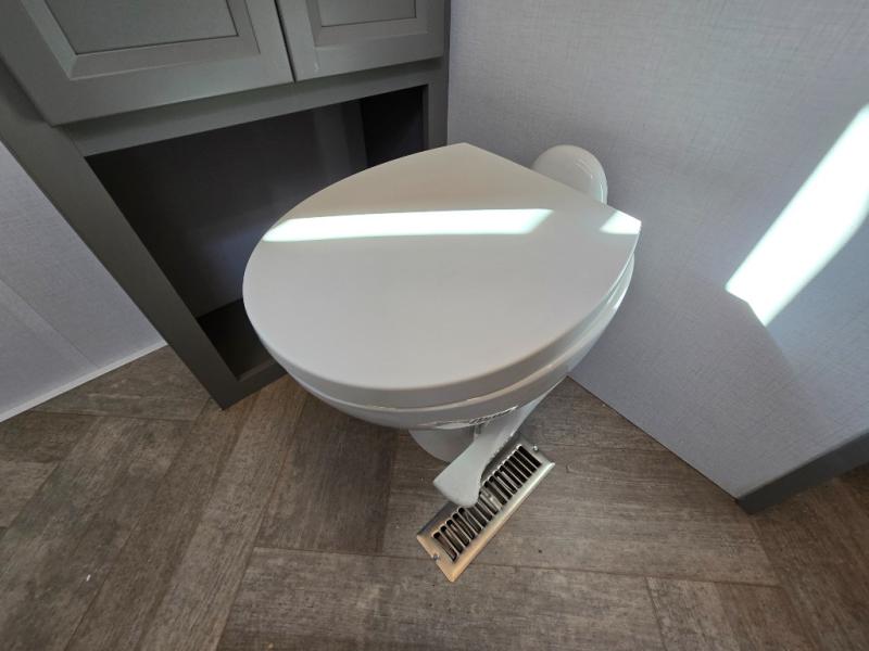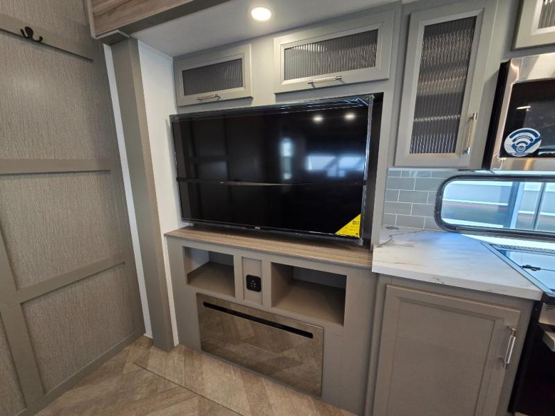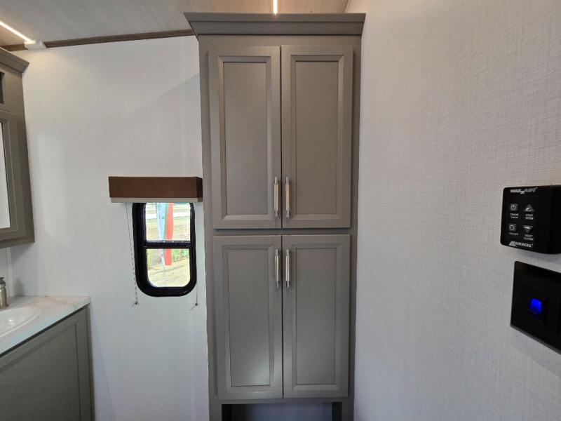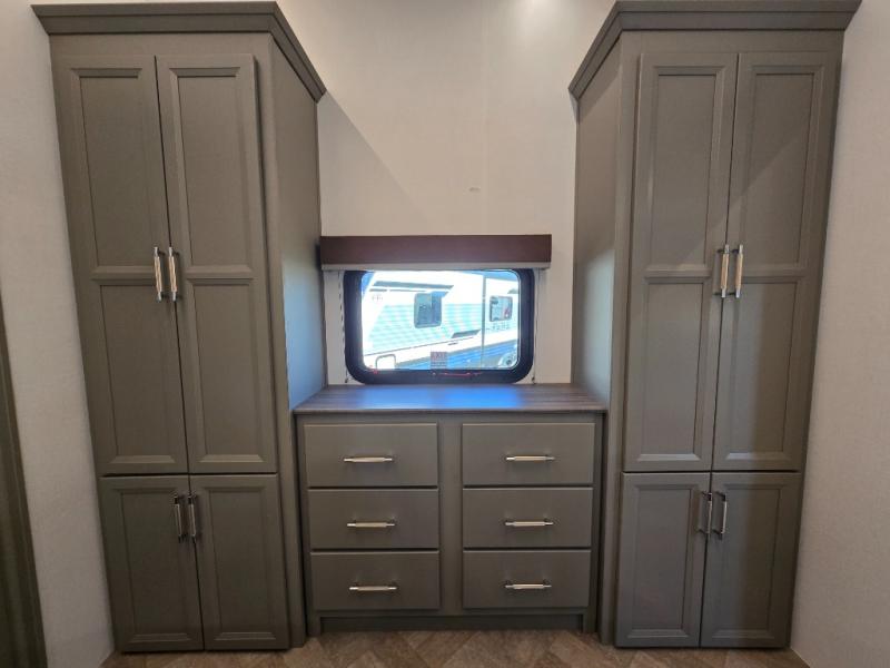 This fifth wheel is designed to provide plenty of room for the whole family, with luxury and functionality in mind. It’s a great choice for those seeking a homey feel with the added benefit of spacious storage and convenient features.
