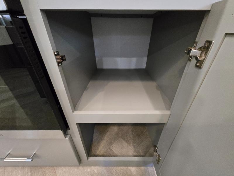 - Well-Equipped Kitchen: A three-burner gas range, stainless steel microwave, and pantry make meal prep easy. You can choose a booth dinette or an optional free-standing dinette for dining.