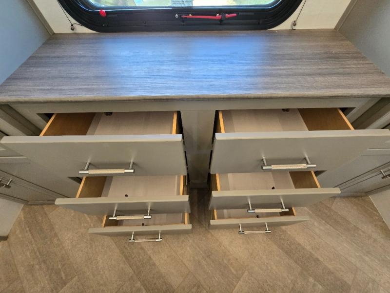 - Storage: The heated pass-through storage with lockable slam latch baggage doors ensures you have enough space for your gear, while the central command center keeps everything in reach for easy control of your trailer’s systems.