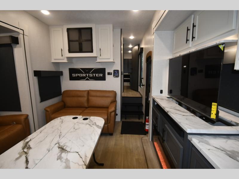 Experience the ultimate in luxury with Sportster X by KZ. Our bold, automotive-inspired design features sleek lighting that turns heads on the highway. Built for comfort and stability, our trailers boast Equa-Flex suspension and 6-point electric auto leveling. Stay connected and in control with KZ Engaged, powered by One Control, which features new integrated buttons and a screen. Enjoy year-round camping with our Climate Package, including a heated, insulated, and enclosed underbelly. Harness the power of the sun with our 200W Solar Panel. Immerse yourself in sound with our premium JBL Audio System. Also, this brand offers seamless countertops paired with a deep under mount stainless steel kitchen sink. The Sportster X is dedicated to helping you elevate your adventures and explore the horizon in style.