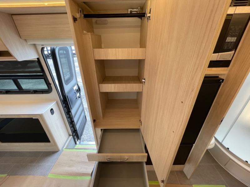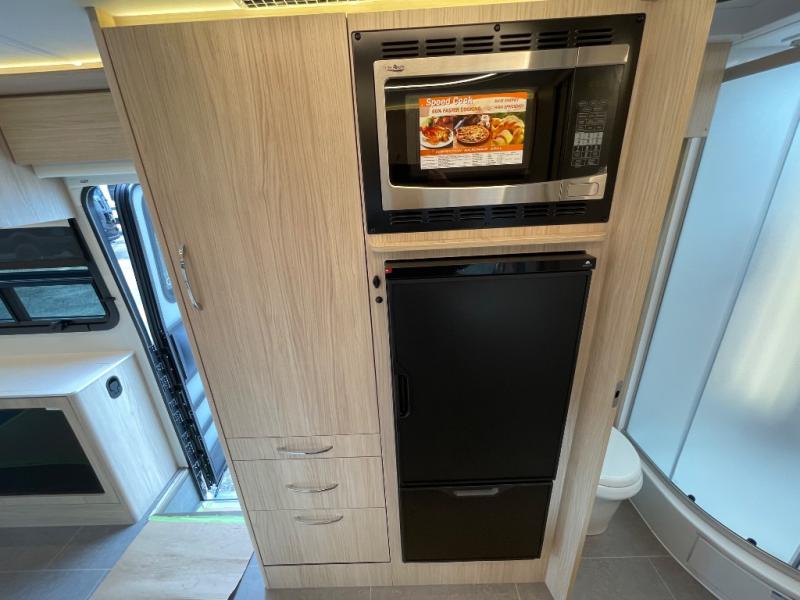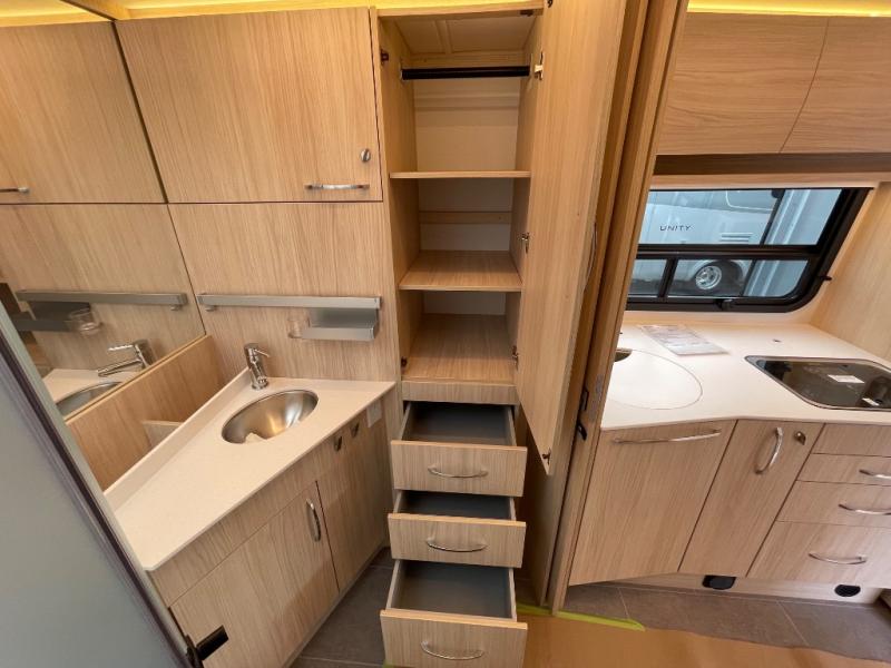 Each Unity Class B+ diesel motorhome by Leisure Travel sits on a durable Mercedes-Benz Sprinter 3500 dual rear wheel chassis with a 2.0-L Turbocharged I-4 diesel engine to power your adventures. The powder coated steel undercarriage support structure and vacuum-bonded construction provide a coach that will last for years, and there are eight sleek exterior paint options to make the coach your own. You'll love driving the Unity with its electronic stability control, adaptive cruise control, 9-speed automatic transmission with quieter noise levels and more comfort. There is even a digital mirror with sharp high-resolution that can be switched between convectional display and digital display for convenience. The luxurious interior includes Ultraleather furniture, a contoured solid surface Corian countertop in the kitchen, new decor options, plus many more comforts. And all of your power need will be met with 270-Ah, 12V Lithium coach batteries with an internal heating system, plus a 3000W pure sine inverter and a 30 Amp power cord. If you choose the optional 60th Anniversary Edition, you will enjoy the Diamond White exterior paint, diamond-quilted upholstery, Cool Ice Ultrafabrics, matte black hardware, and more elegant features that are exclusive to this package!
