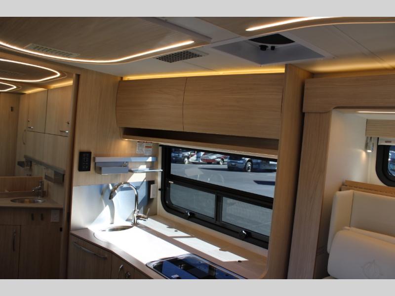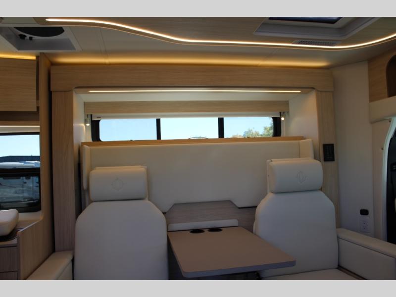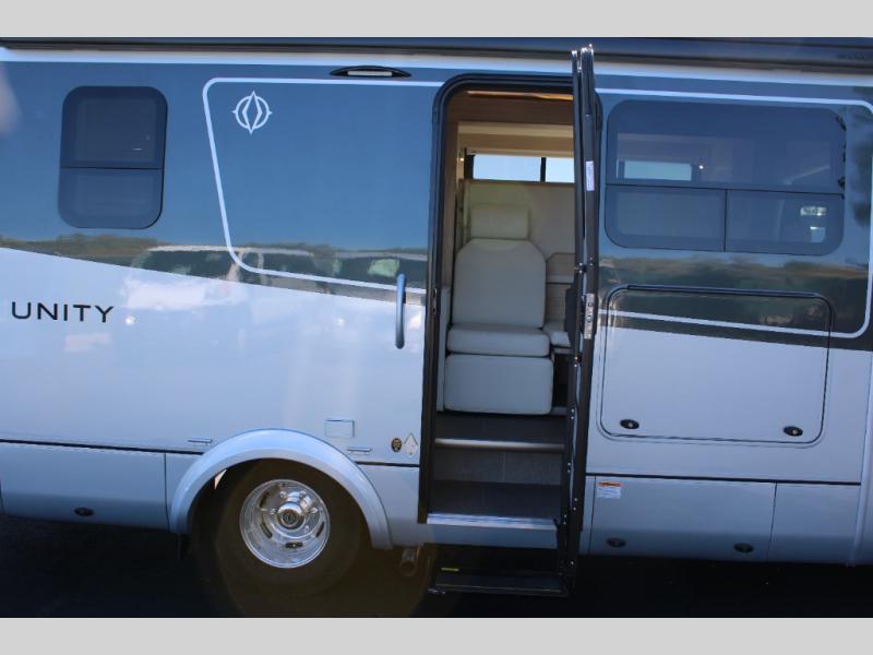 Each Unity Class B+ diesel motorhome by Leisure Travel sits on a durable Mercedes-Benz Sprinter 3500 dual rear wheel chassis with a 2.0-L Turbocharged I-4 diesel engine to power your adventures. The powder coated steel undercarriage support structure and vacuum-bonded construction provide a coach that will last for years, and there are eight sleek exterior paint options to make the coach your own. You'll love driving the Unity with its electronic stability control, adaptive cruise control, 9-speed automatic transmission with quieter noise levels and more comfort. There is even a digital mirror with sharp high-resolution that can be switched between convectional display and digital display for convenience. The luxurious interior includes Ultraleather furniture, a contoured solid surface Corian countertop in the kitchen, new decor options, plus many more comforts. And all of your power need will be met with 270-Ah, 12V Lithium coach batteries with an internal heating system, plus a 3000W pure sine inverter and a 30 Amp power cord. If you choose the optional 60th Anniversary Edition, you will enjoy the Diamond White exterior paint, diamond-quilted upholstery, Cool Ice Ultrafabrics, matte black hardware, and more elegant features that are exclusive to this package!