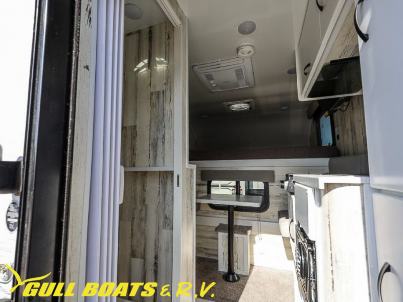 You can see and do it all in this truck camper! A 25" x 80" dinette will provide a place to dine after you've made lunch on the two burner stove with glass top, and this space can double as sleeping space for a guest. And you're sure to get a great night's rest on the 60" x 80" queen-size bed. The 2-way Max Air vent will provide great ventilation, and you can choose to add the optional 13.5 BTU A/C to cool you off even further. You are sure to appreciate the 200W roof mount solar power and 200W Renogy controller for off-grid capabilities, and the tankless on-demand water heater will provide hot water when you need it!