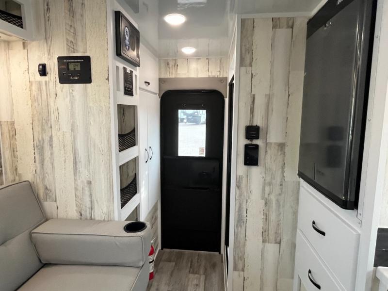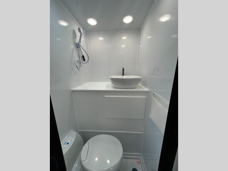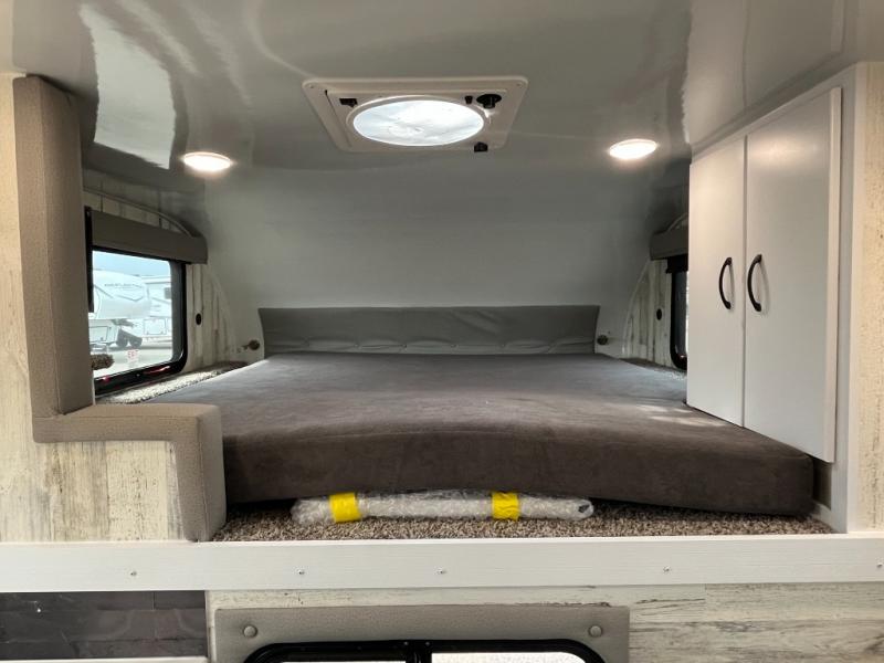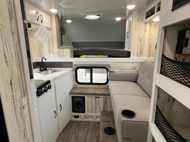 The Modern Buggy truck camper is constructed with Azdel walls, roof and ceiling, double rolled R7 insulated walls, and a composite subfloor for added strength and durability. You will love the look of the Stained Birch or White Sands cabinetry inside, and the USB stations will keep your electronics powered up. There are manual jacks outside, along with an outside spray port shower box and a heavy duty grab handle to safety enter the unit. Optional upgrades such as, a lithium battery, electric jacks and a power awning can be added to further customize your truck camper!