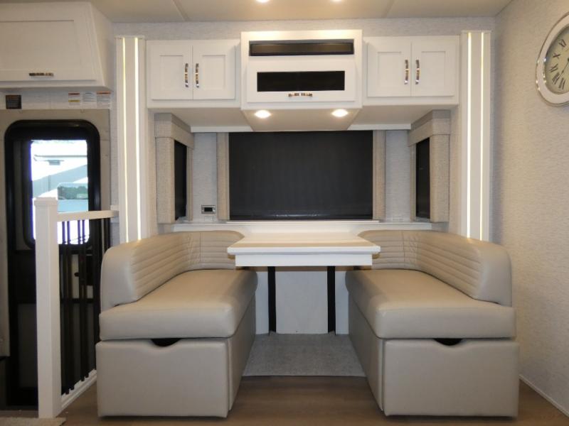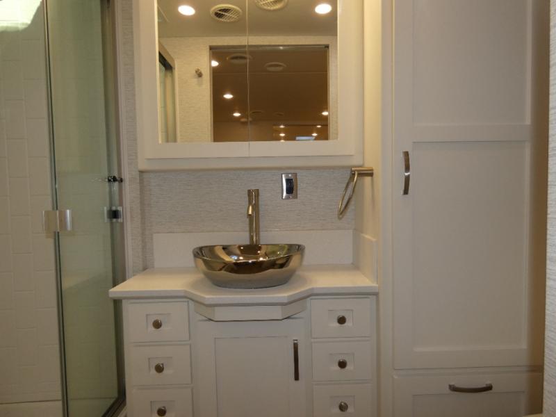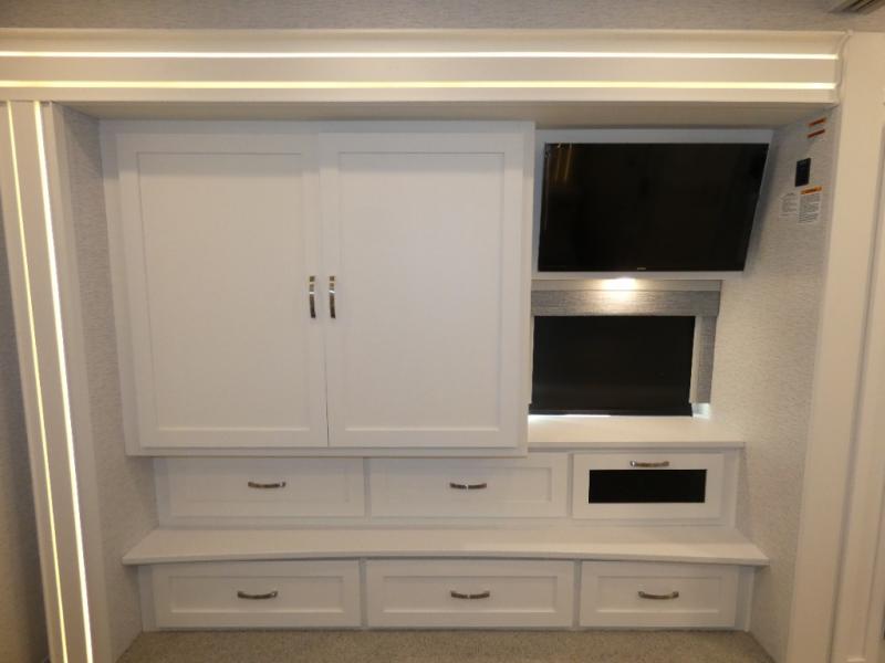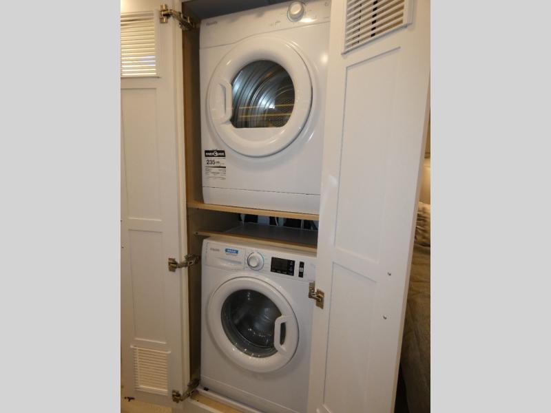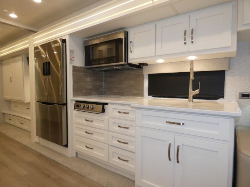 This coach is the perfect companion to take across states since it will feel just like home. There is a full-wall slide that will open up your living space, plus two additional slides so you won't feel confined. You will love the master bedroom and the full rear bath that includes a linen closet for clean towels, and there is a mid-coach half bath with an area for a Splendide stacked washer and dryer. The chef of your group will have a 30" convection microwave and a three burner cooktop to prepare meals each day, and there is a booth dinette (sleeper) where you can all dine together. You might want to relax on the sofa comfort lounge after dinner and watch a movie on the TV on power lift!