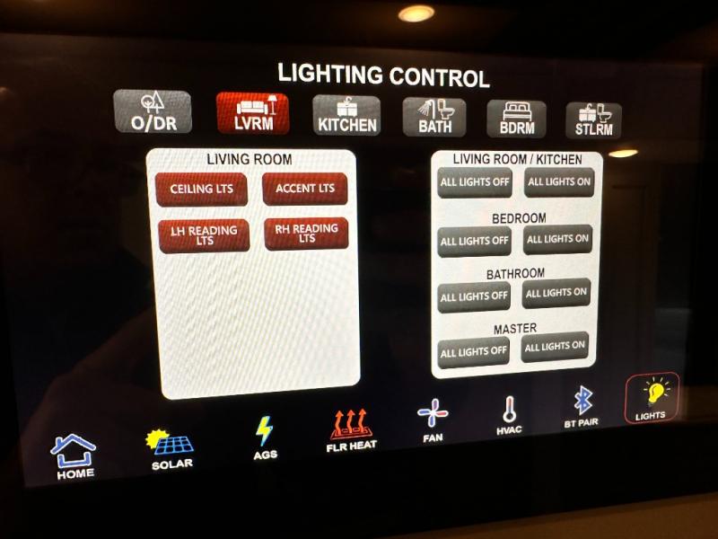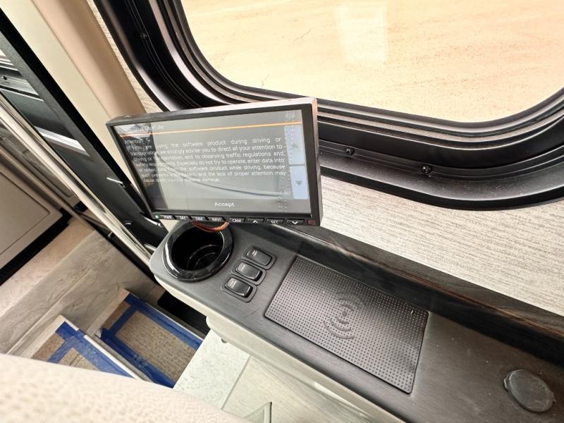 Luxurious accommodations and elegant amenities are found in abundance on the Newmar Dutch Star Class A diesel motorhome! The interior features a tile floor, decorative wall art, hardwood raised panel doors, and MCD window shades. There are also super-polished solid-surface countertops, six-way power cab seats with recliner and footrest, and push-to-release drawer slides in the pantry. And the electric radiant heat installed below the main floor and bedroom tile is sure to bring comfort wherever you go! You'll find great convenience from the rearview color monitor system with audio, and there is a Bluetooth microphone for the dash radio. The roof has been prepped for a satellite dish, and the dash radio comes with a Harman/JBL 180W sound system and subwoofer.