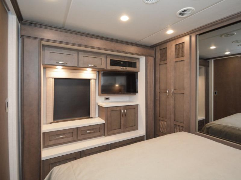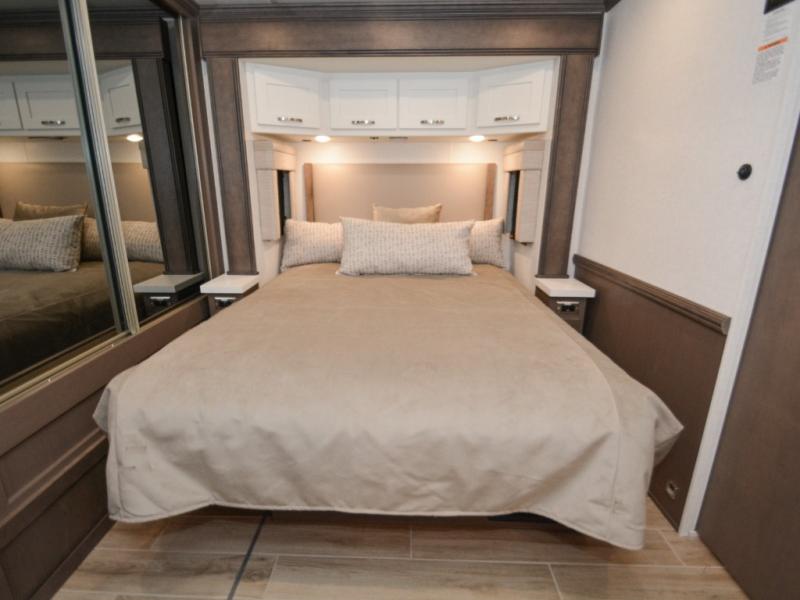 Step right up to the diesel pusher lifestyle with Newmar's most affordable Class A diesel coach, the Northern Star! You will be met with a luxurious interior that includes maple cabinet doors, polished solid-surface countertops, Villa Comfort Fit furniture, and MCD window shades to name a few comforts. The Full-Paint Masterpiece Finish is ultra sleek, and the diamond shield protection on the front cap will help against debris, bugs, and more. The driver is sure to appreciate the V-Ride drive axle suspension, along with the anti-lock braking system and Mobileye lane tracking and lane departure warning system for added safety. Each model also includes a Samsung LED TV in the living room and bedroom, a 10" Sony dash radio, a Bose soundbar sound system, and more entertainment features to ensure you'll never go bored on rainy days!