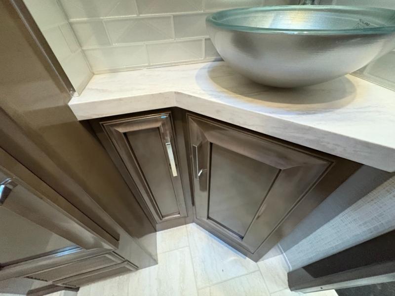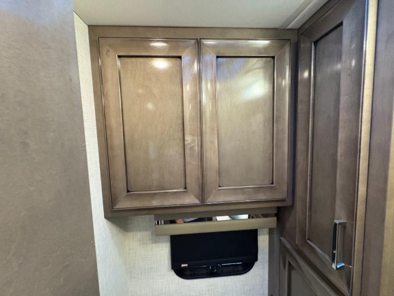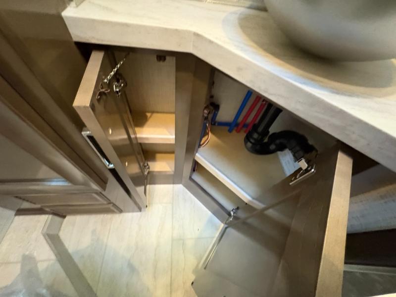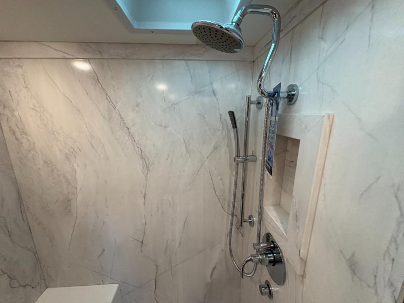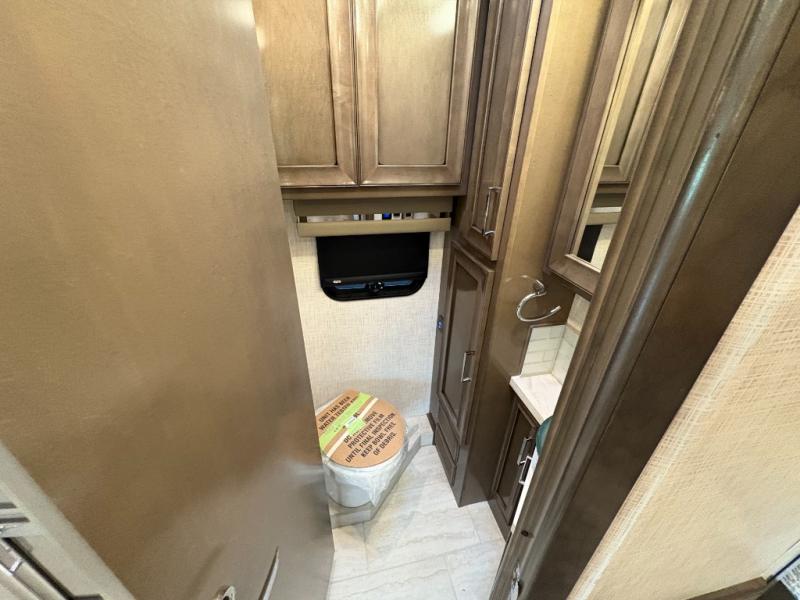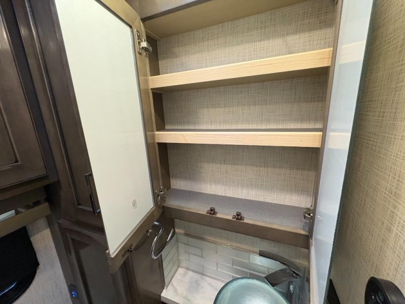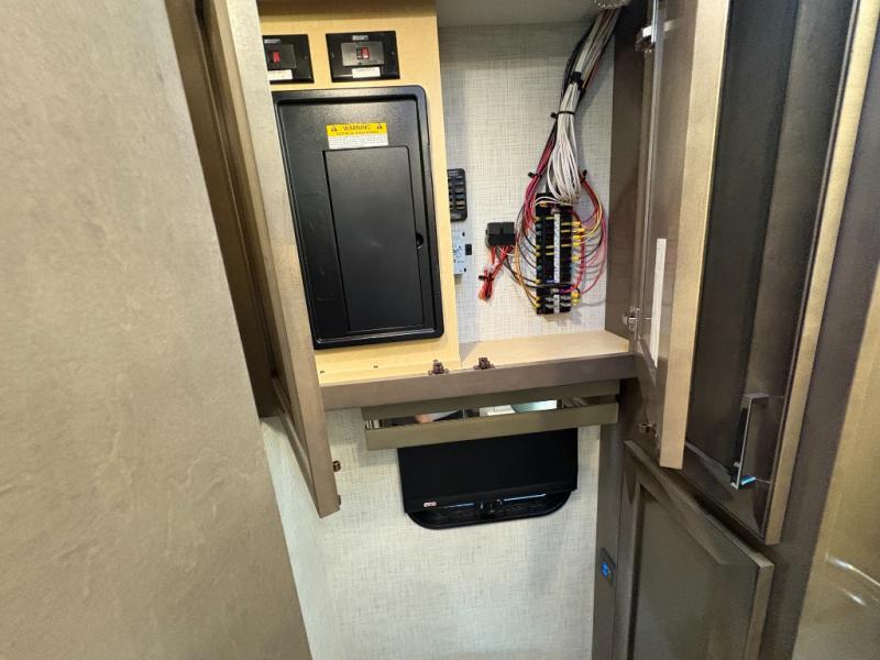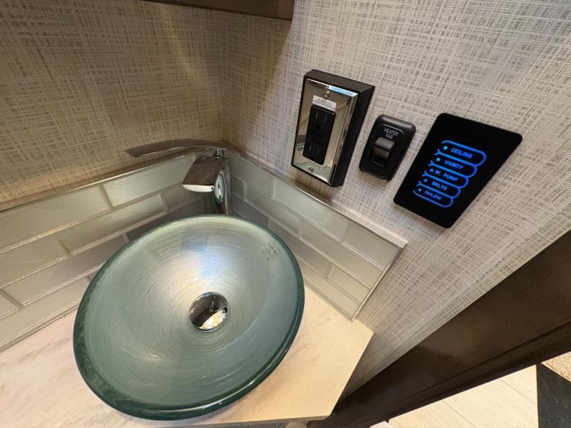 Step right into luxury with this Ventana coach that can sleep six people each night. Your guests can make their beds on the side hide-a-bed sofa, the jack knife sofa, and the booth dinette, while you take the king bed slide out in the master bedroom. You will have the full rear bath to yourselves that includes a wardrobe with shelves, a 50" x 30" shower, plus washer and dryer prep to make life on the road easier than ever. In the morning you can prepare breakfast on the all electric induction cooktop, or use the stainless steel convection microwave. There is also a large pantry here and a 19.7 cu. ft. Whirlpool refrigerator for food storage.