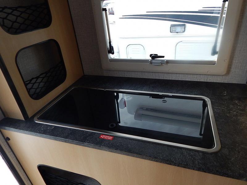 Head for the hills in this half-ton truck camper for three! After driving to your destination all day, you can make lunch on the Suburban two burner cooktop once you set up camp, and there is a glass stove top/sink cover when you need more counter space. The dinette will be perfect for meals times, and you can convert this to a 44" x 52" bed if you have a guest. A Thetford cassette toilet will make nighttime restroom breaks easier than ever, and you'll sleep soundly on the front 54" x 80" mattress.