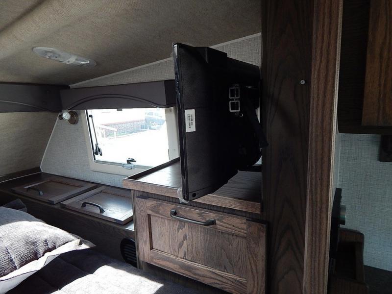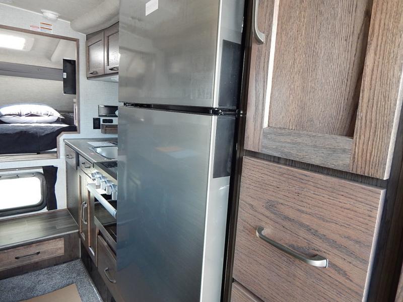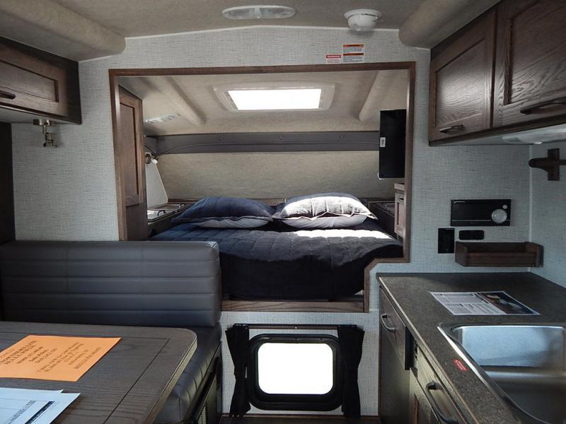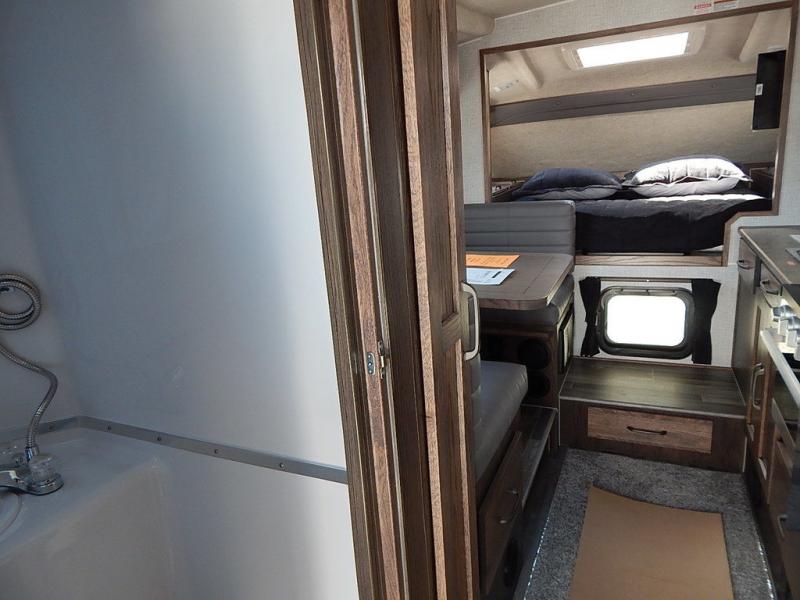 Enjoy a home on top of your long bed truck with this truck camper! Start each morning feeling recharged after sleeping on the front queen bed while your electronics recharge at the 12V USB charging stations. Fill your bellies with fried bacon and eggs cooked on the three burner stove with oven and drink a cold glass of orange juice stored in the 8 cu ft 12-Volt Refrigerator. Plus, you can eat your meals at the face-to-face dinette and transform into an extra sleeping space. You can even freshen up each morning in the dry bath with extra room, a divider that separates the shower from the toilet, and a built-in shower seat. There is plenty of storage throughout with closets and overhead cabinets too!
