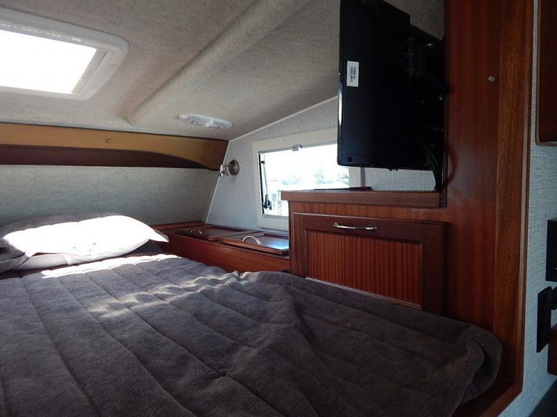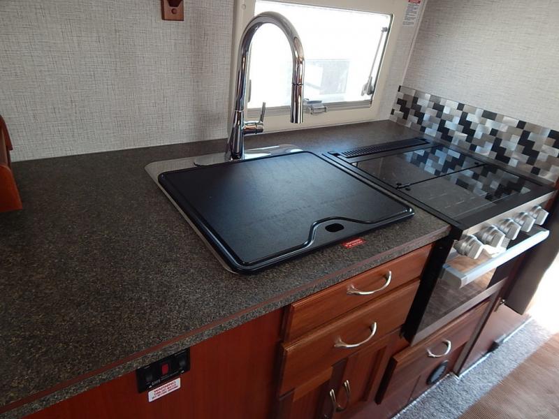 If you have a short bed truck then you need this truck camper for your next adventure! Start each morning feeling recharged after sleeping on the front queen bed while your electronics recharge at the 12V USB charging stations. Fill your bellies with fried bacon and eggs cooked on the three burner stove with oven and drink a cold glass of orange juice stored in the 8 cu. ft. refrigerator. Plus, you can eat your meals at the face-to-face dinette and transform into an extra sleeping space. You can even freshen up each morning in the wet bath. There is plenty of storage throughout with closets and overhead cabinets too!