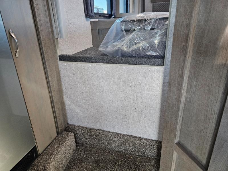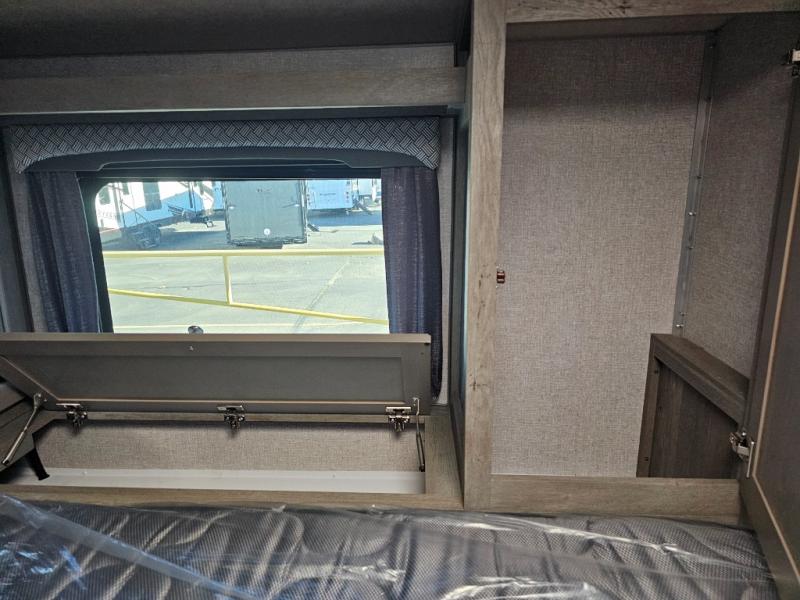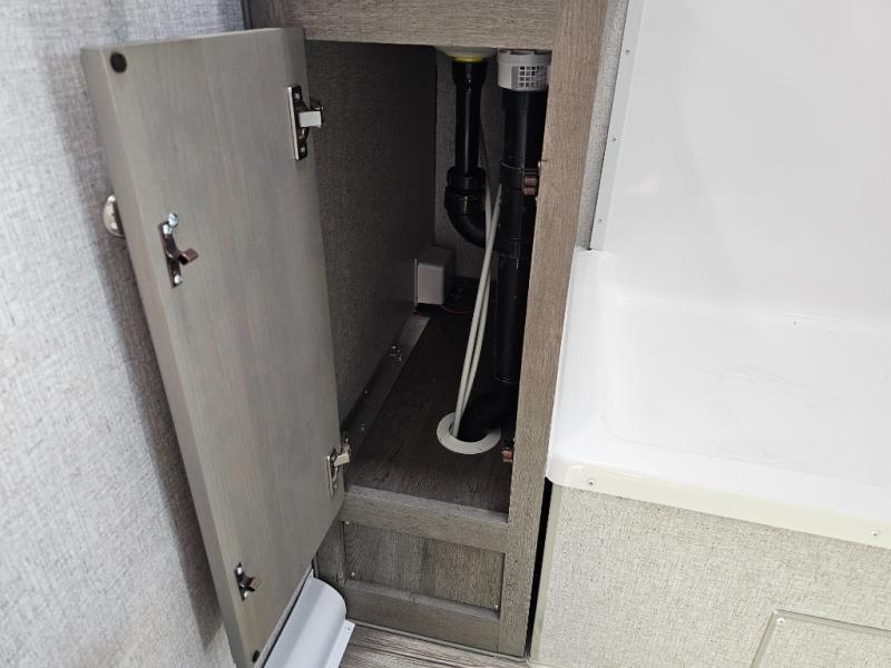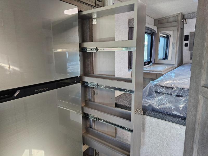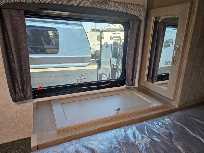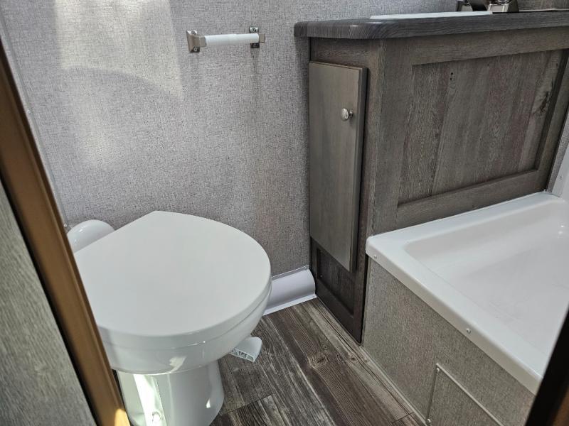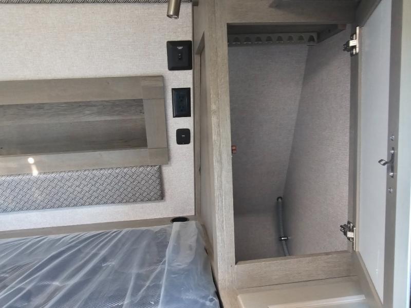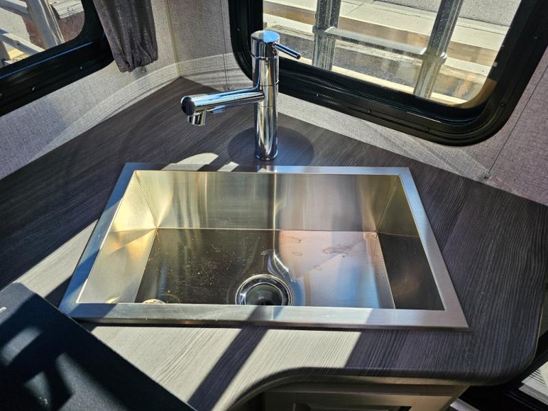 When you like to travel with your truck and your boat or trailer, this truck camper makes sense, plus gives you all the comforts you will need after a day on the water or playing around camp. The booth dinette, 12V refrigerator plus the pantry are within a slide giving you more floor space to move from the rear entry to the front bed where you can sleep like royalty on the NW TruRest mattress. There are three wardrobes and two hampers up front, and a space to add a TV option. Extra sleeping space is found on the converted dinette and you can add an optional bunk, plus you will find more storage in overhead cabinets and another wardrobe.
