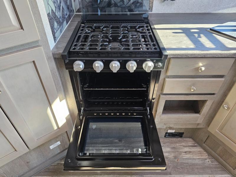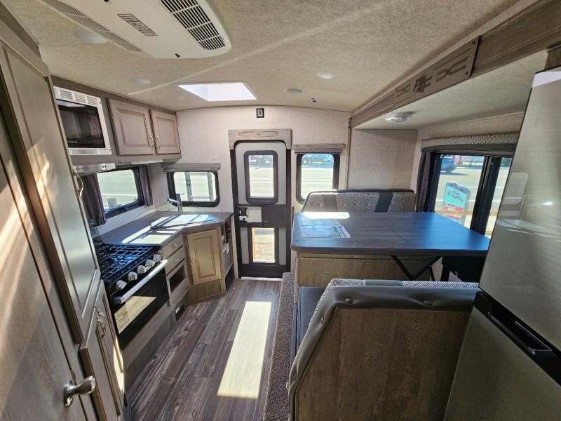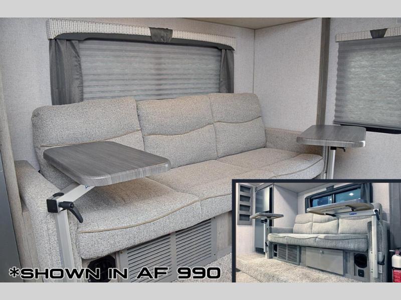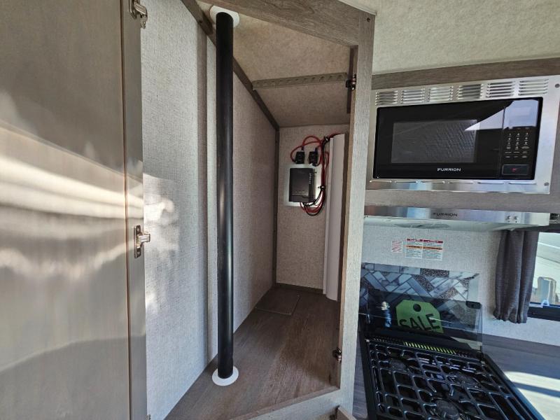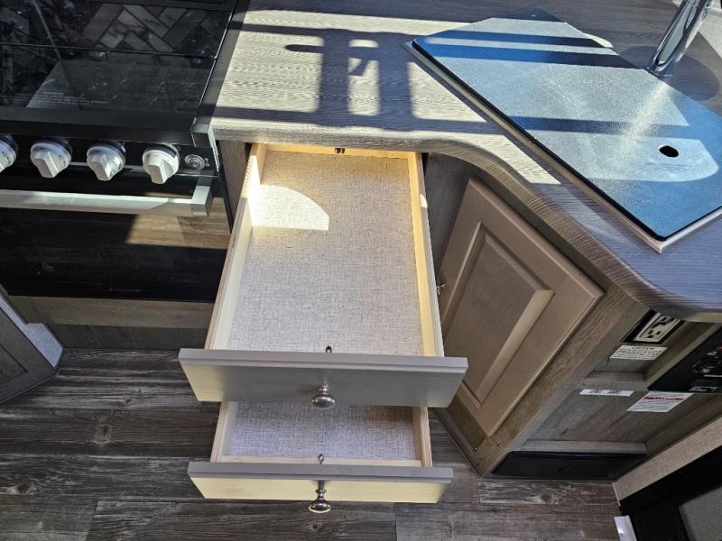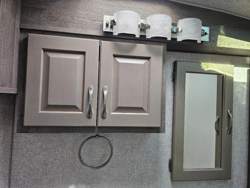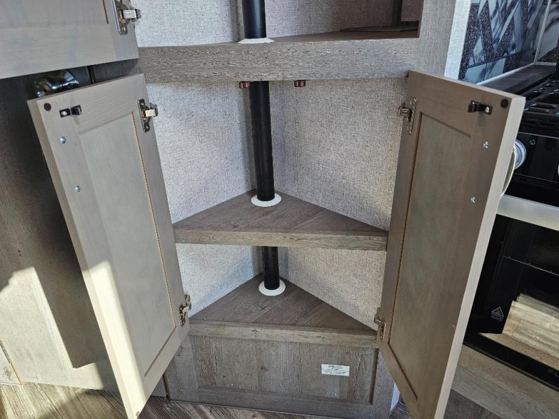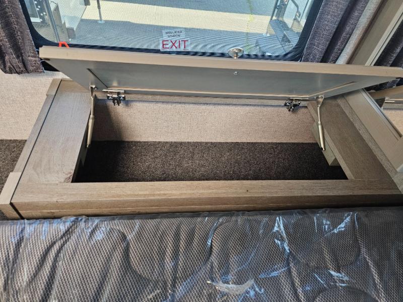 When you like to travel with your truck and your boat or trailer, this truck camper makes sense, plus gives you all the comforts you will need after a day on the water or playing around camp. The booth dinette, 12V refrigerator plus the pantry are within a slide giving you more floor space to move from the rear entry to the front bed where you can sleep like royalty on the NW TruRest mattress. There are three wardrobes and two hampers up front, and a space to add a TV option. Extra sleeping space is found on the converted dinette and you can add an optional bunk, plus you will find more storage in overhead cabinets and another wardrobe.