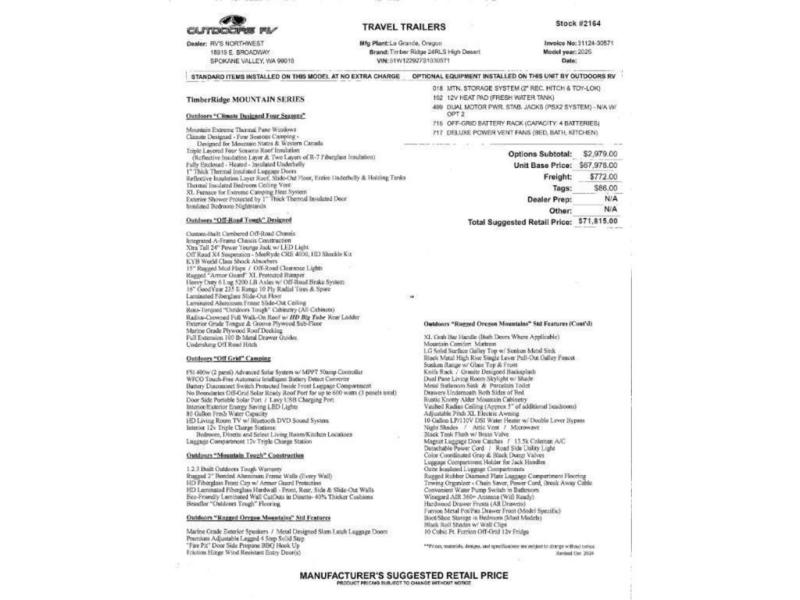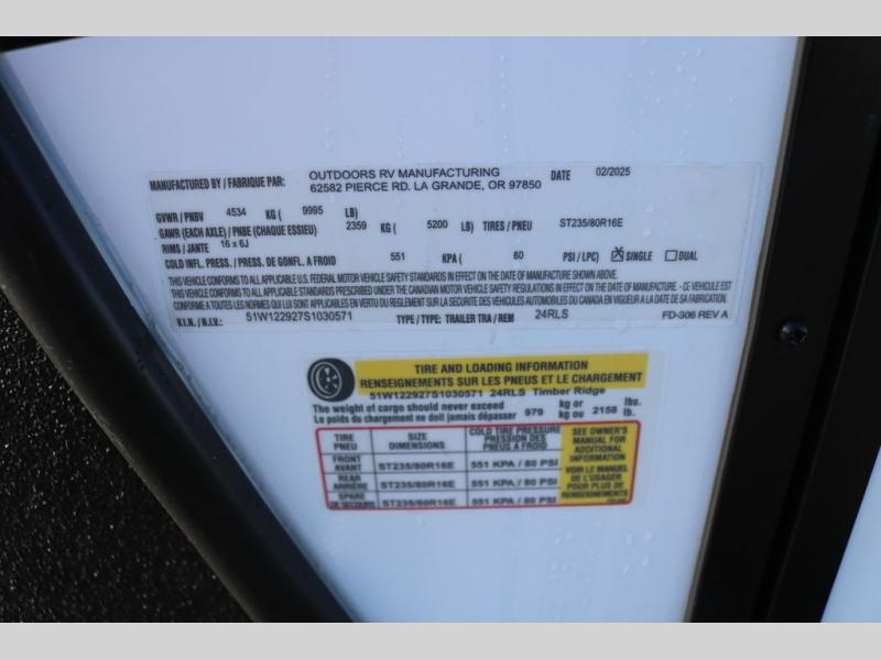 New 2025 Outdoors RV Timber Ridge Mountain Series 24RLS Travel Trailer