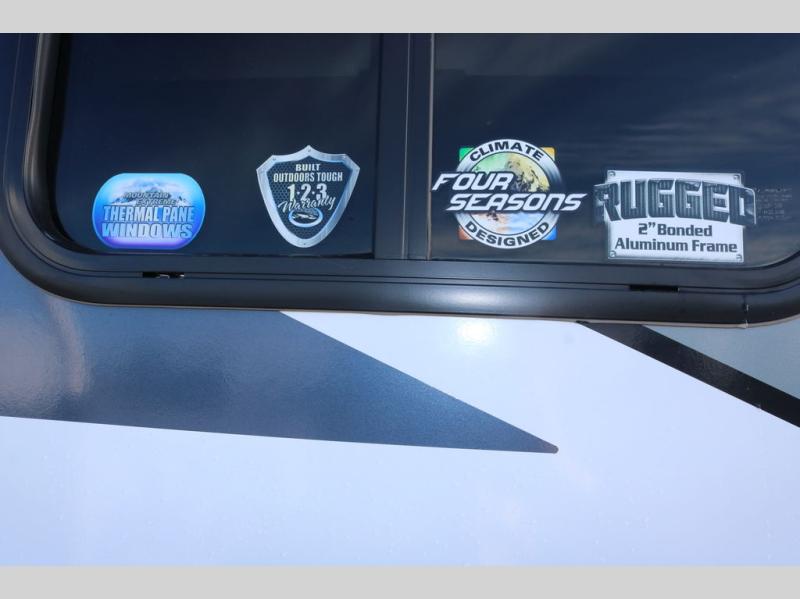 With any Timber Ridge Mountain Series travel trailer by Outdoors RV, you will enjoy climate designed four seasons camping thanks to the thermal pane windows, XL furnace, plus unique heated and insulated holding tank design. The custom built chassis and rugged integrated A-frame are built for strength and durability, along with the rugged 2" bonded aluminum frame walls. Each model includes LG solid surface countertops, granite designed backsplash, vaulted radius ceilings, and a mountain comfort premium mattress for all-around comfort. You will also love the XL panoramic slide out windows and the dual pane living room skylight with a shade to let natural light in!