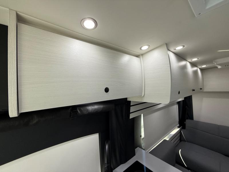 Luxury on Wheels: Crafted with meticulous attention to detail, enjoy features like premium Ultraleather seating, handcrafted maple cabinetry, Corian countertops, and a power sofa that converts into a spacious queen bed.
