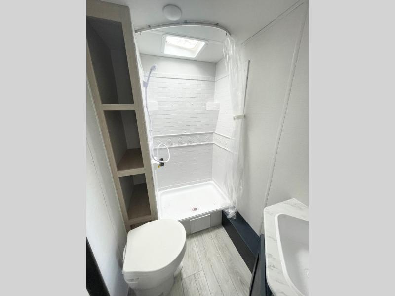 With any Avenger LE travel trailer by Prime Time RV you will enjoy at-home comforts while at the campground! Durable construction begins with an enclosed and heated underbelly, a one-piece roof membrane, and diamond plate front rock guard for added protection against debris during transport. There are also locking magnetic latches on the baggage doors, fully vented windows throughout, four stabilizer jacks, plus solar prep if you want the option to go off-grid. The interior will have you feeling right at home with residential extended ball bearing drawer glides, seamless Carefree Congoleum flooring, an XL single basin kitchen sink, and shower pans in all models that will make it easy to get in and out of the bath. Some of the convenient appliances and equipment you will appreciate are the 15,000 BTU A/C, 12V high-capacity water pump, Slim Profile range hood, and the Winegard 360+ antenna with Wi-Fi prep!
