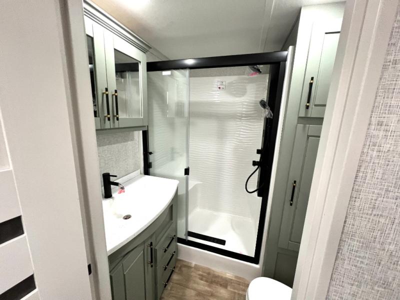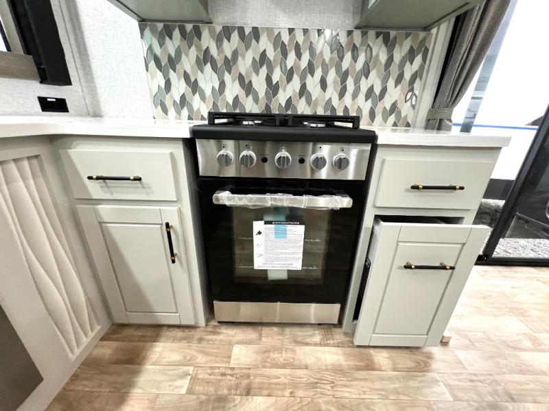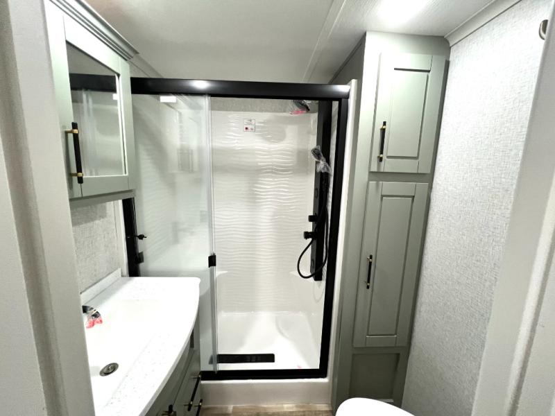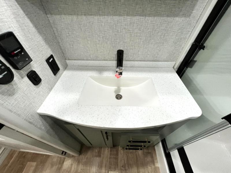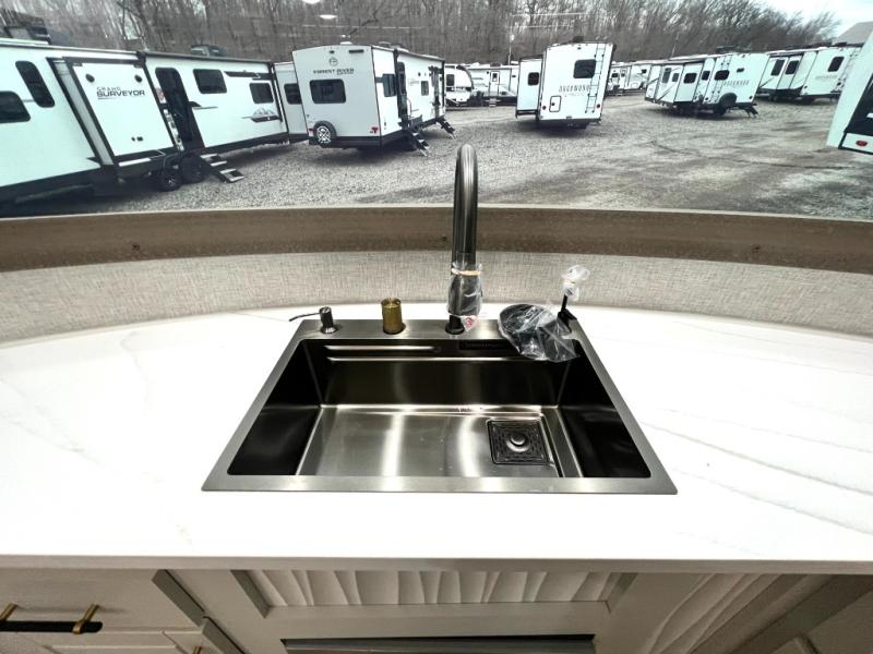 With any Regency destination trailer by Redwood RV, you will find it easier than ever to enjoy extended stays at the location of your choice. Each model is built with a Z-65 true gel coat fiberglass exterior, a fully walkable roof with one-piece Alpha-Ply roof material, and a 12" custom I-beam chassis for a strong foundation. There are also enclosed and heated water lines outside, along with wireless backup camera prep, a front insulated fiberglass cap, and dual pane windows. You'll love the standard Parks Package that includes USB ports throughout and a Winegard 360 to stay connected as you camp, plus a central vacuum and custom hardwood cabinet doors for that added touch of home! The Full-Time Living Package also comes standard and includes a multi-functional stainless steel sink, linoleum throughout, a dedicated garbage cabinet, and a power vent in the bathroom to name a few conveniences!