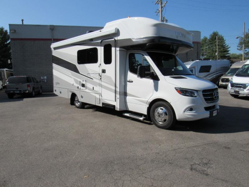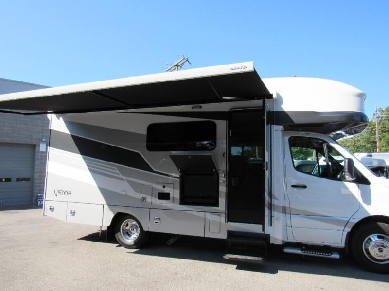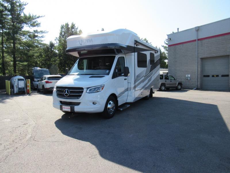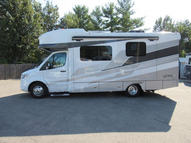 Luxury is in the details of each one of these Renegade Vienna Class C diesel motorhomes! They are built on a Mercedes-Benz Sprinter chassis, and include a four point hydraulic leveling system with app control, a 2000w true sine wave hybrid inverter, a 3.6KW LP generator with auto gen start, and Winegard Connect 2.0. You will appreciate the Truma™ Comfort Plus tankless water heater when showering, the accent lighting at the galley countertop for style, and the USB charging in the living area, bedroom and kitchen to keep your electronics ready. The Maple hardwood cabinetry completes the luxurious décor throughout the inside. Make your selection today!