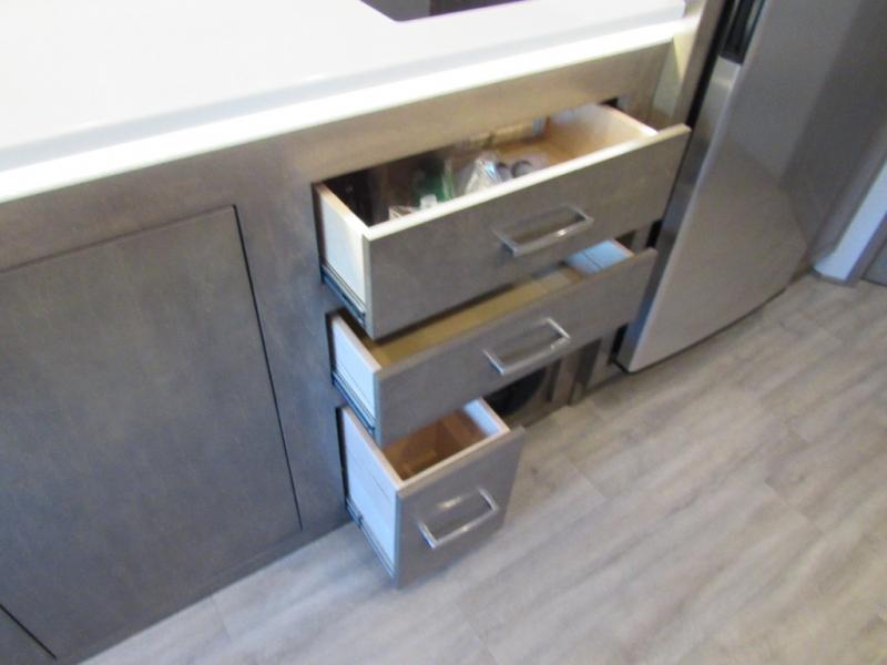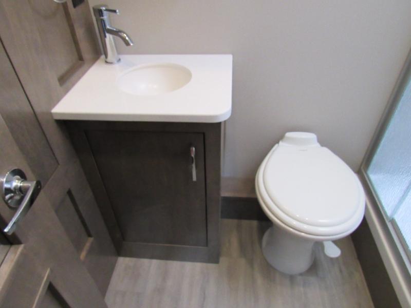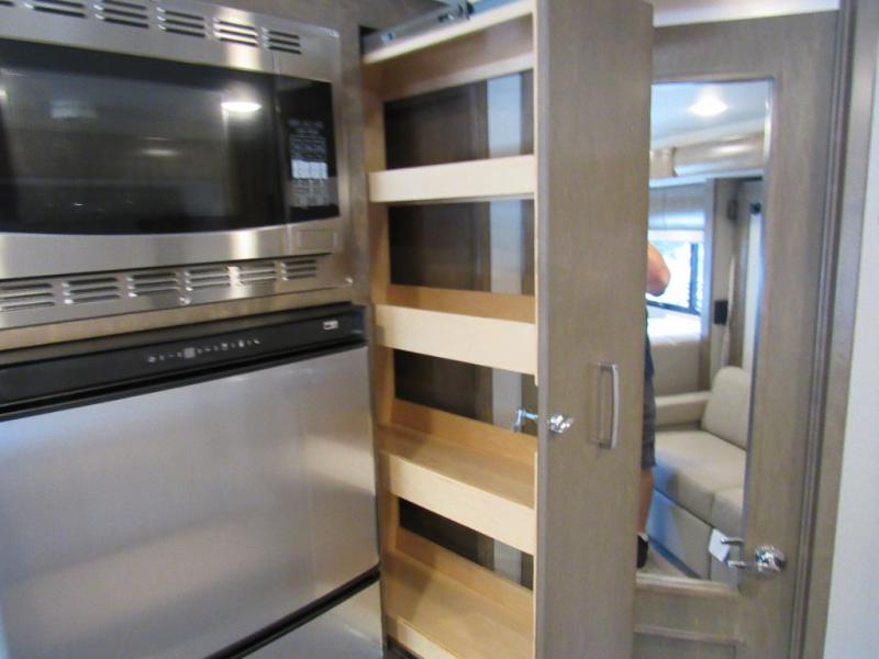 This is the perfect couples motorhome to explore the country! You will stay squeaky clean in the full rear bathroom with shower, and a large closet to store your clothes, towels, and other toiletries. Depending on what time you enter this coach will determine whether you see the sofa or the 65" x 72" Murphy bed. The kitchen has a two burner cooktop, a convection microwave, and an 8 cu. ft. refrigerator to prepare home cooked meals, and a booth dinette to enjoy them at. The 46" x 80" bunk mattress over the cab lets another member join in on the adventure and the booth dinette offers sleeping space as well.