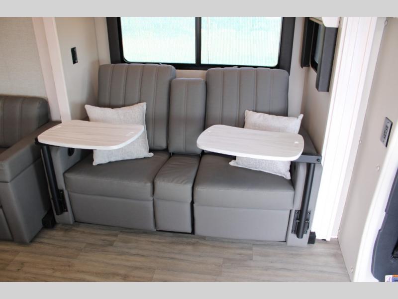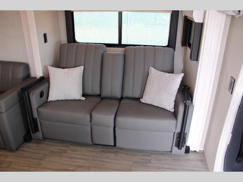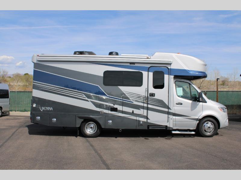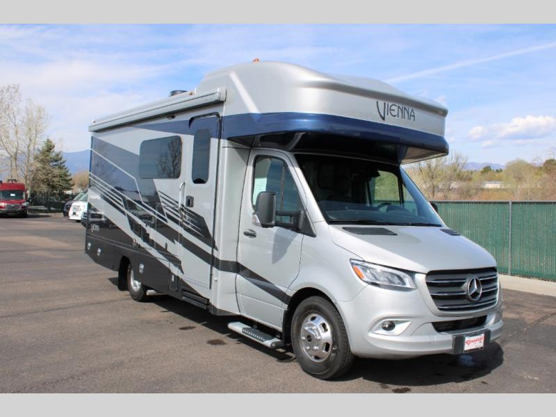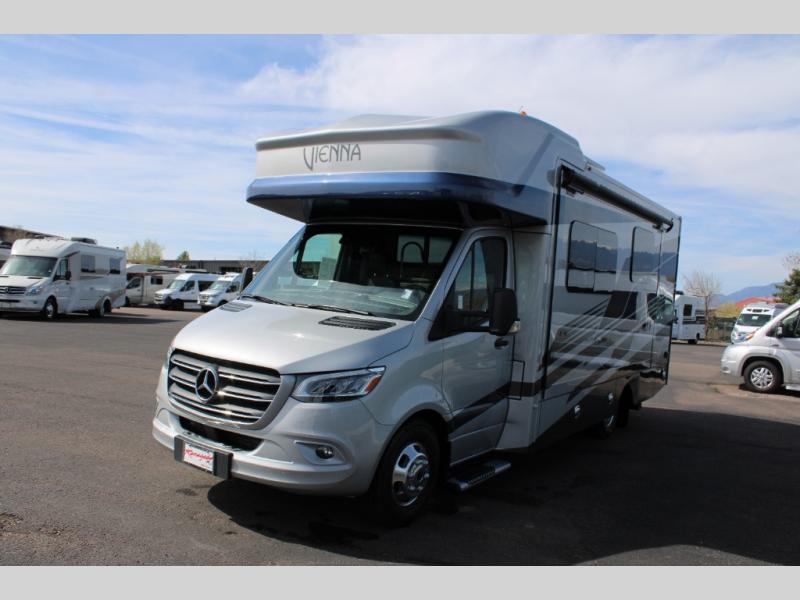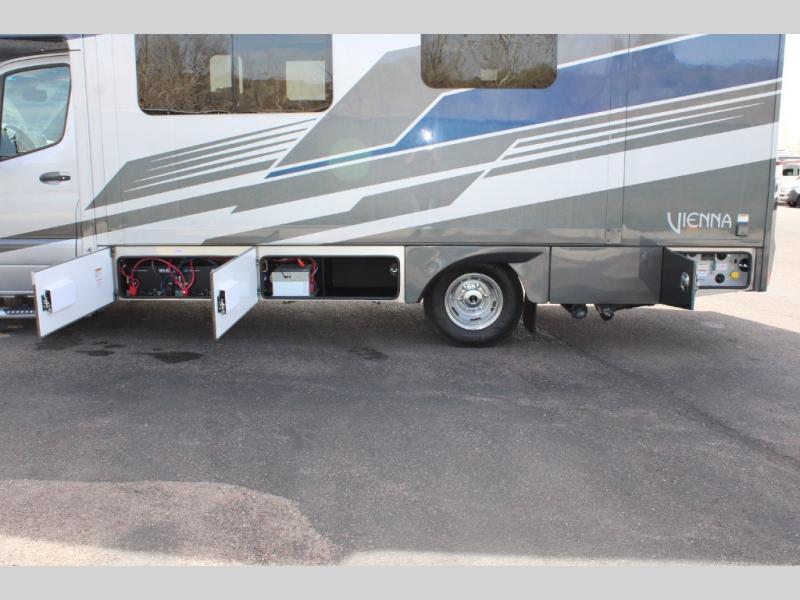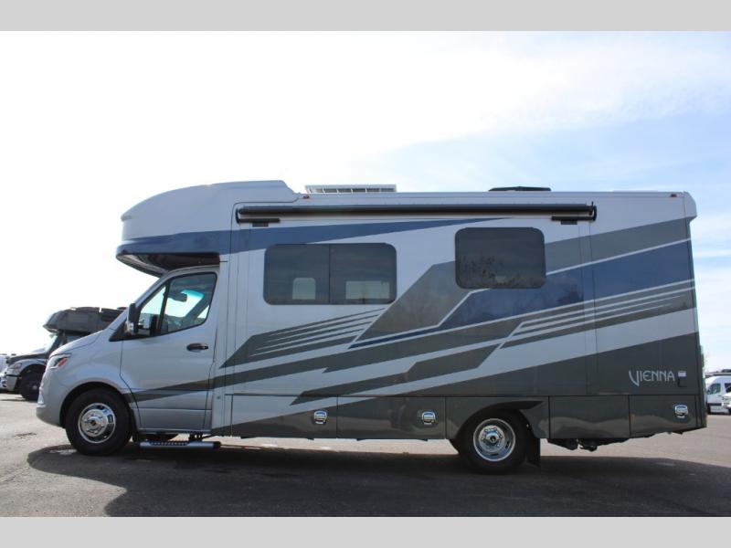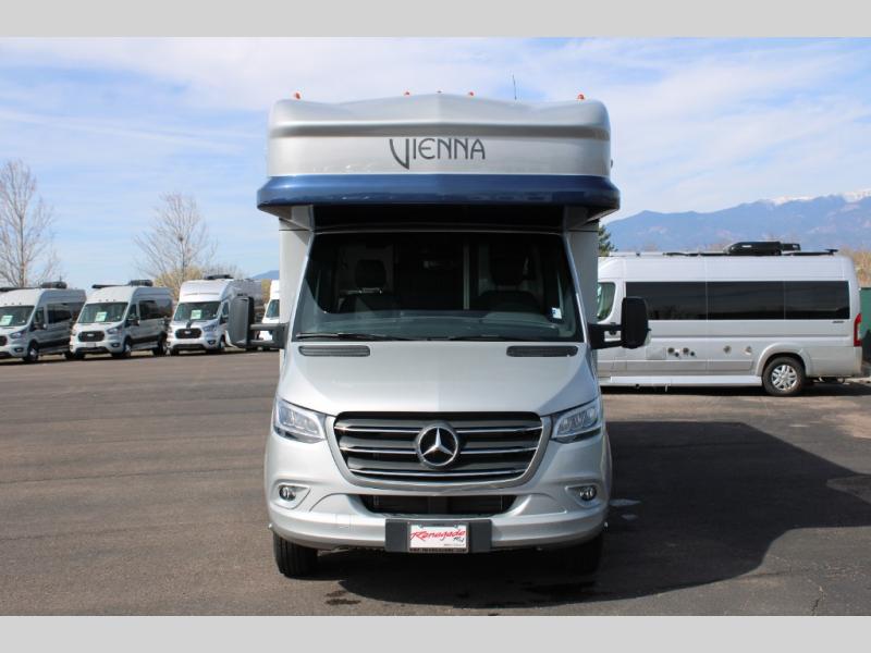 Luxury is in the details of each one of these Renegade Vienna Class C diesel motorhomes! They are built on a Mercedes-Benz Sprinter chassis, and include a four point hydraulic leveling system with app control, a 2000w true sine wave hybrid inverter, a 3.6KW LP generator with auto gen start, and Winegard Connect 2.0. You will appreciate the Truma™ Comfort Plus tankless water heater when showering, the accent lighting at the galley countertop for style, and the USB charging in the living area, bedroom and kitchen to keep your electronics ready. The Maple hardwood cabinetry completes the luxurious décor throughout the inside. Make your selection today!