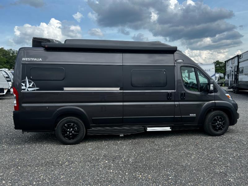 The Roadtrek Westfalia Class B gas motorhome is built on the Ram ProMaster 3500 chassis, offering reliability and safety. The stylish interior is Euro-inspired with black and white seats. The Uconnect HD radio with Apple Car Play and Android Auto includes a 10.1" display so you can easily see your route. Technology features like a wireless charging pad, 4G LTE Wi-Fi hotspot, and multiple integrated USB charging ports mean you can stay in touch, but you'll also love disconnecting as you gaze up at the stars. Outside you'll find a 13' power awning to protect you from the sun or rain, heavy-duty bug screens on all doors, and an outside shower for cleaning up after an outdoor adventure!