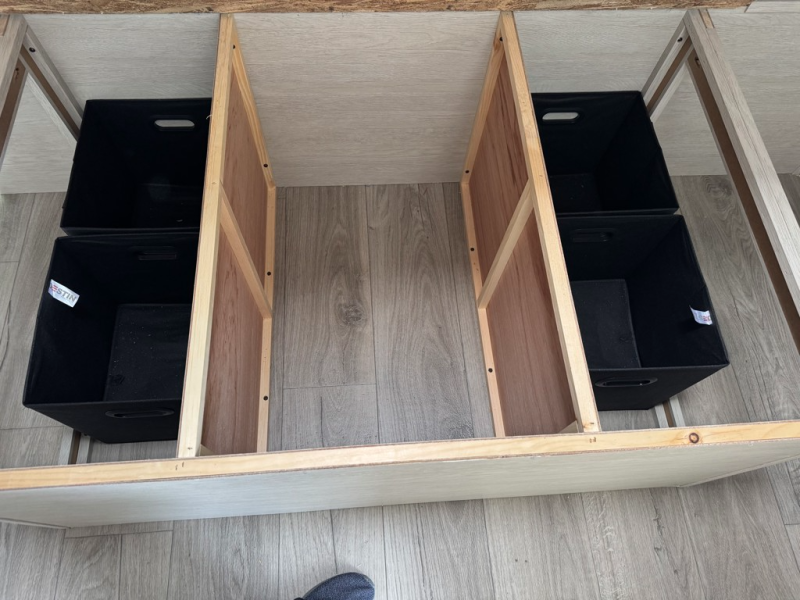 Exterior pass-through storage provides easy access for chairs, gear, and outdoor essentials from either side of the trailer. Inside, storage is placed where it’s actually used, keeping walkways clear and living spaces functional.
