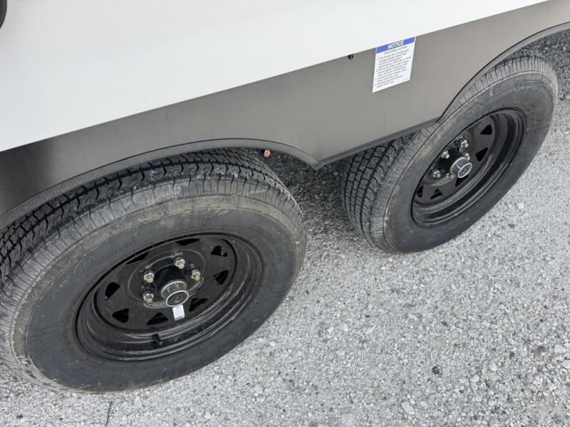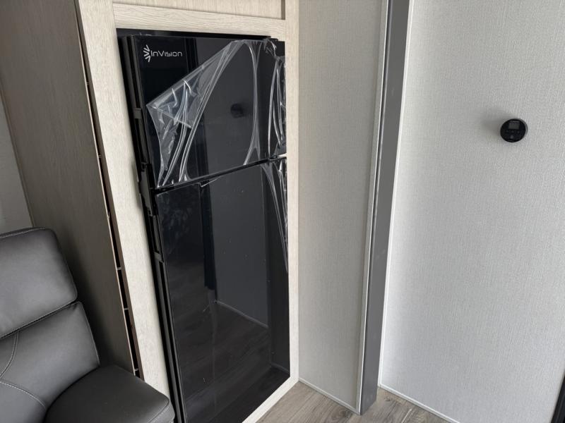 The i-5 Edition is designed with value and practicality in mind. Four stabilizer jacks help keep the trailer steady when set up, and the enclosed underbelly adds protection while traveling. The included Base Camp Package features a tankless water heater, black tank flush, system monitor panel, battery disconnect, 13.5K A/C, and an 8 cu. ft. residential-style refrigerator. Interior details like seamless countertops, sink covers, and a portable Bluetooth speaker add convenience without overcomplicating the layout.