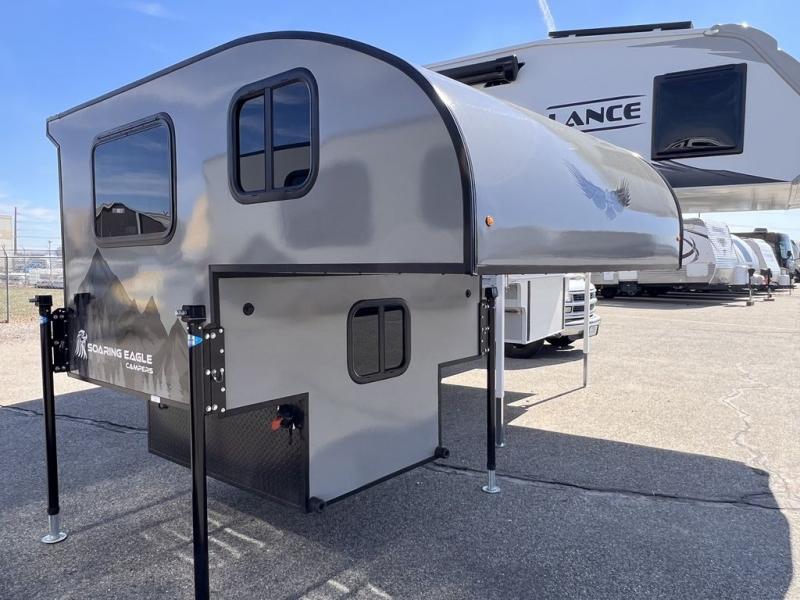 Each one of these Soaring Eagle ADLAR truck campers take the concept of entry level campers and adds real functionality to it! Their entire construction consists of an all aluminum tubular construction for better strength, lighter weight, and indifference to water. The smooth fiberglass exterior and rugged black diamond pate aluminum skin around the lower perimeter will turn heads in the highway. There are LED exterior marker/clearance lights and LED exterior security light over the entrance door for you to see clearly at night. Come find your favorite one today!