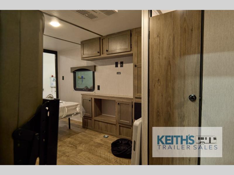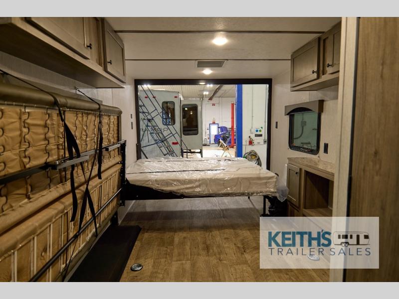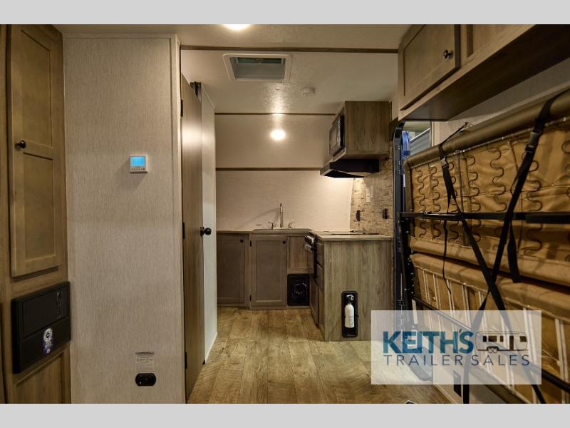 Get ready for a great camping experience where you can take along your favorite ride-on toys, kayaks, or other items that you may not normally have room to load as this toy hauler features 13' 2" of cargo space that can easily be loaded using the rear ramp door. Once unloaded, set up with the fold-down bed that will make for a great night's rest. There is also a jiffy sofa that can transform into added sleeping space at night. The kitchen amenities will make it easy to create a warm meal, and you can get cleaned up and refreshed in the bathroom with tub/shower and toilet.