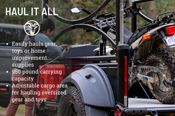 The SylvanSport GOAT folding pop-up camper lets you Go All-Terrain! The durable construction and rugged exterior means you can take back roads, and the versatility means you have the choice to use it as a gear hauler, toy hauler, or camper. The GOAT features a Timbren axleless suspension, Falken WildPeak all-terrain tires, a reinforced side frame with side panels, and more within the Goat Base Package. Available upgrades within the Goat Big Package and Goat All Out Package include a tent awning, Sub Cloud layer mattresses, Gozeebo screenroom package, Durabag carrier, and more!