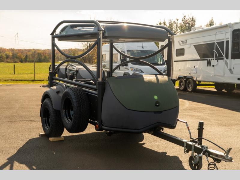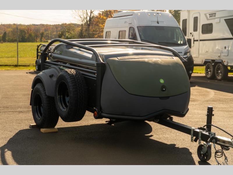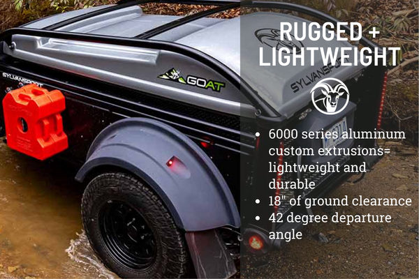 This rugged and off-road camper is perfect for all your outdoor adventures. You are sure to love the easy to tow design and added durability thanks to the 6000 series aluminum custom extrusions. The dry weight for this model is 1,200 lbs. and the overall carrying capacity is 950 lbs., meaning you have the option to bring along more camp gear. The four corner-mounted stabilizer jacks will provide stability when you're set up at camp, and there is a tongue jack for added convenience. Additional features included within the Goat Base Package include fender LED running lights, a GOAT subframe, and a floating rear step.