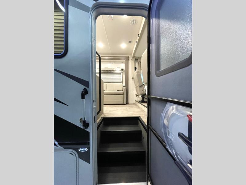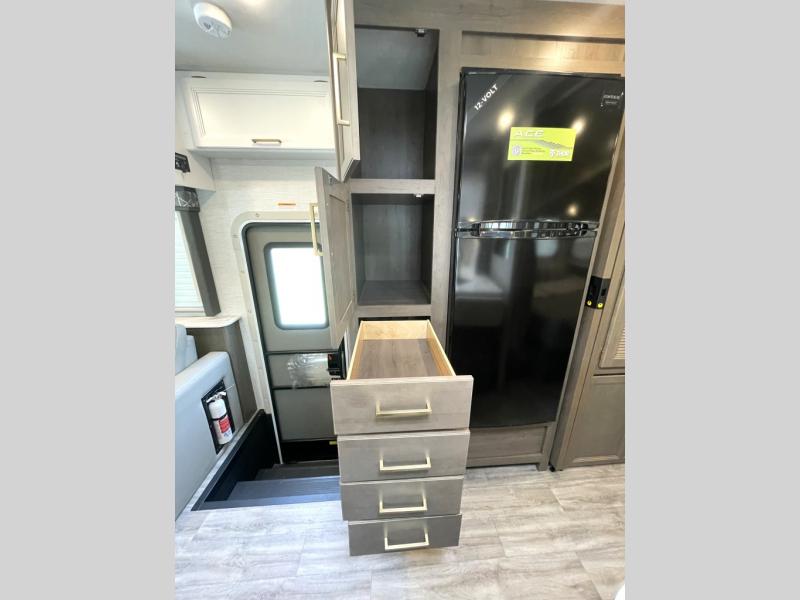 From the moment you step inside, you’ll be impressed by the smart design and open layout made possible by dual slide-outs. Whether you're traveling as a couple or with the whole crew, the A.C.E 29G provides sleeping space for up to six, including a king-size bed in the rear slide-out, a jack-knife sofa, a Dream Dinette, and a drop-down overhead bunk that kids will love.
