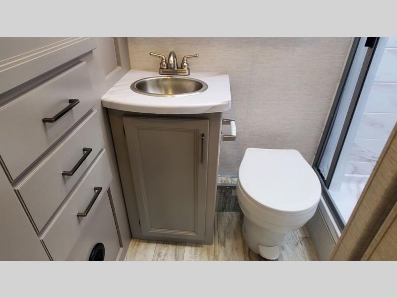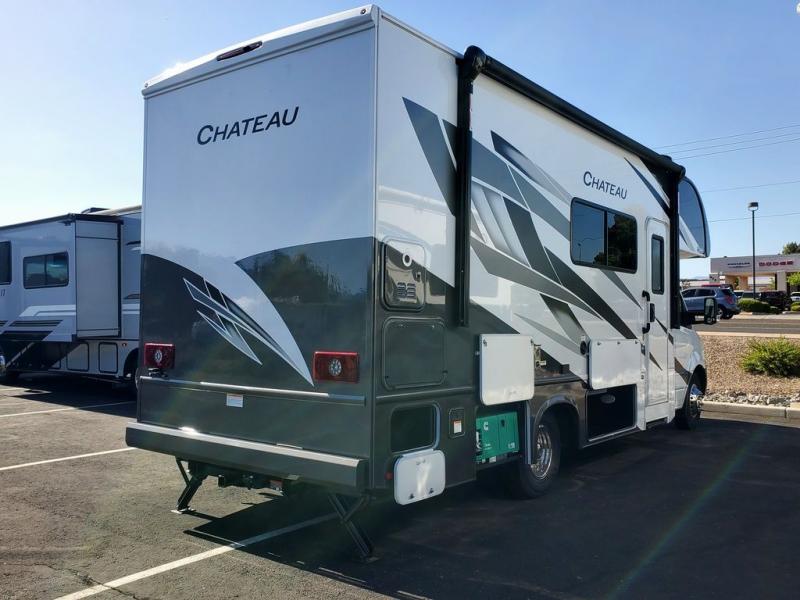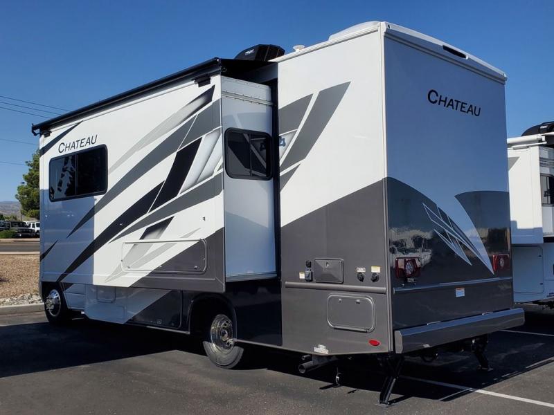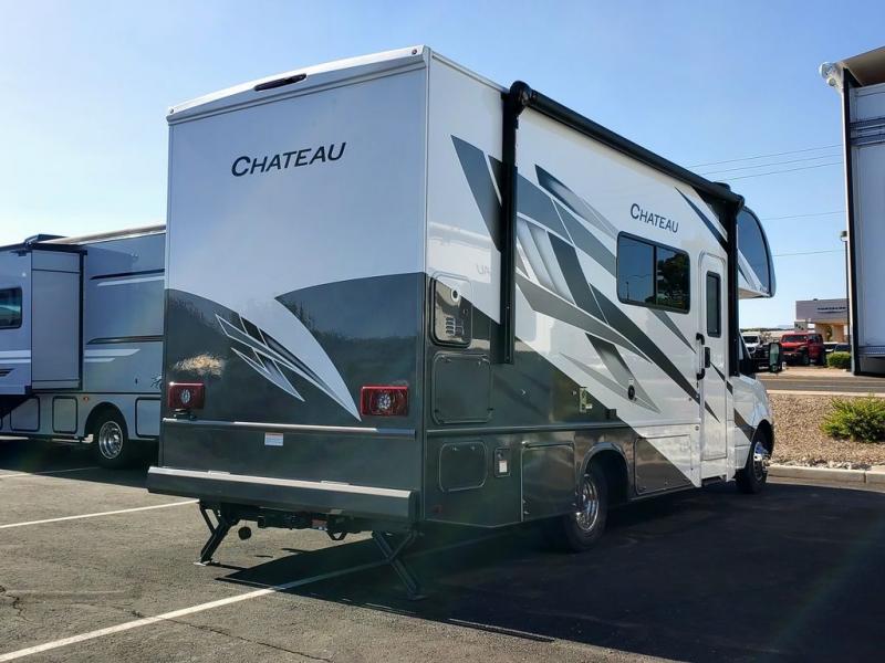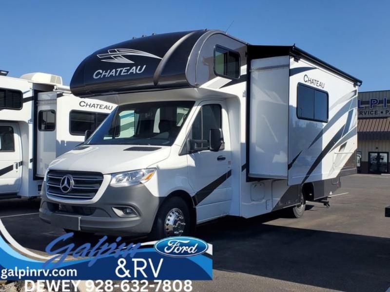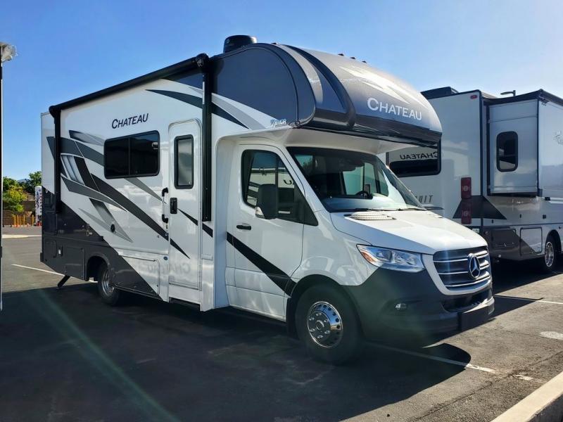 Each Chateau Sprinter offers you a spacious and well-appointed travel companion featuring comfort and amenities that feel like home. You will enjoy the smooth ride of the Mercedes Benz Sprinter chassis that is powered by a 2.0L I-4 engine. All of your journeys will provide you an effortless and relaxing time on the road just determine your route and click on the cruise control. The lighted rotocast storage compartment provides plenty of space to store all of your camping accessories so you can easily grab what you need when camping, then easily tuck it away when you travel. A powered patio awning allows you additional living space outdoors, and the LP external connection allows you to cook easily on the grill. And, no rainy day will upset your vacation because you can enjoy movies inside on a 32-inch Smart TV. The Chateau is your true home-on-wheels with beautiful interiors including comfortable sleeping spaces and kitchen amenities for delicious home-cooked meals anytime! Come choose your model today.